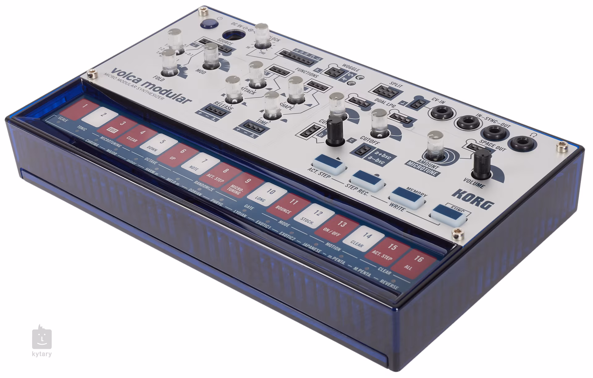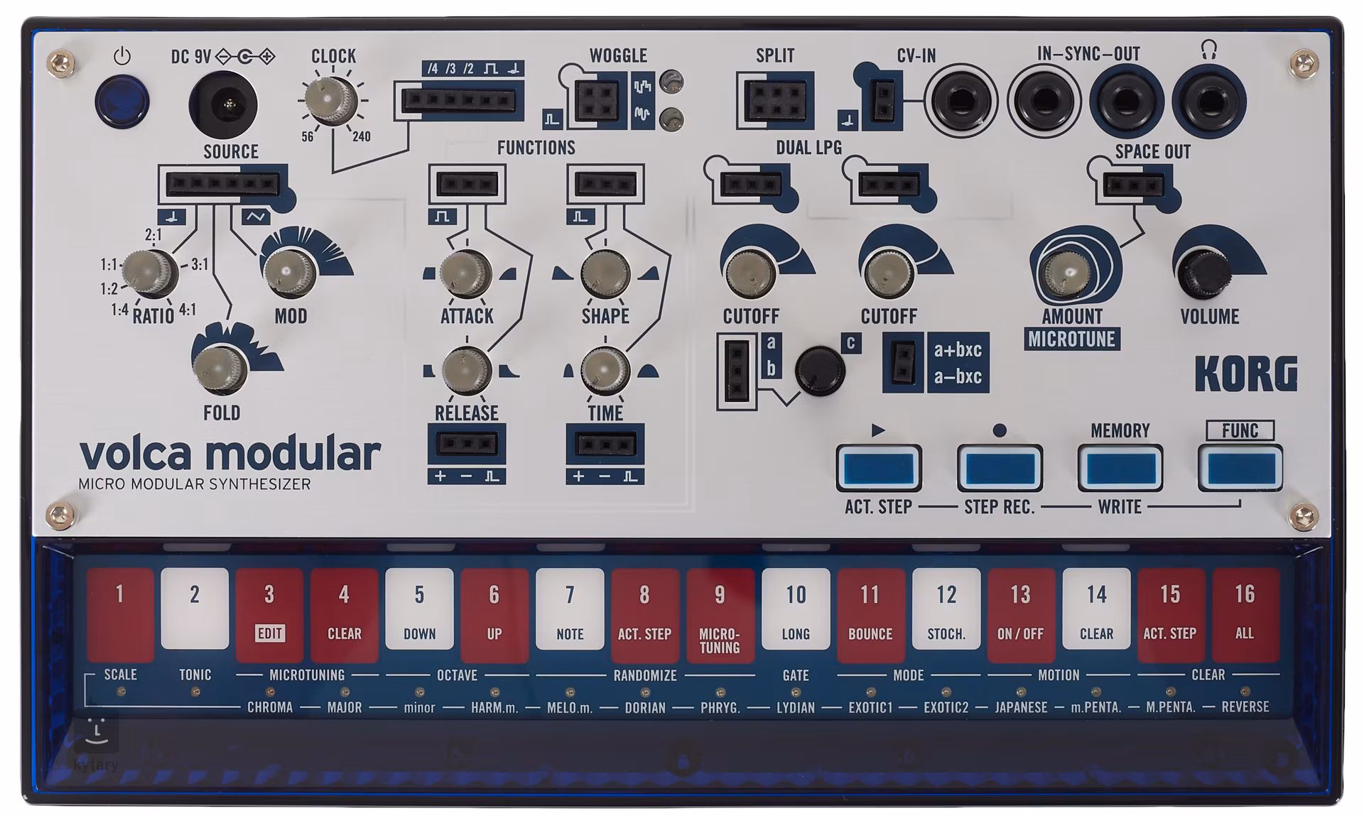 Plug in Łączność zapewniają gniazda wejściowe i wyjściowe zegara 3,5mm oraz wejście CV ze złączem TRS (lewe ±5V, prawe 1V/Oct), z których sygnały można kierować do modułu sterującego. Możesz podłączyć Korg Volca Modular do innych Volc, Teenage Engineering's PO, syntezatora modułowego, sekwencera SQ-1 lub syntezatorów Korg's Monologue, Minilogue, Prologue, między innymi.