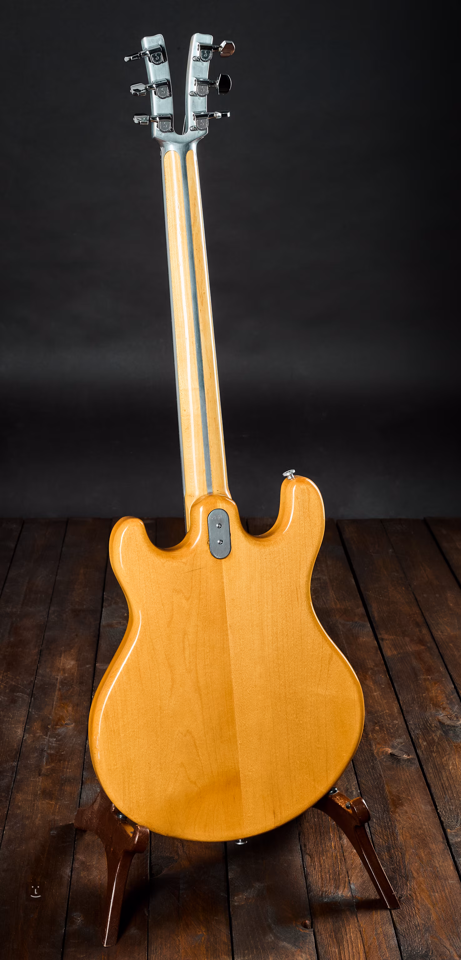 Gryf to połączenie aluminium i klonu. Podstrunnica z hebanu. Korpus klonowy.
