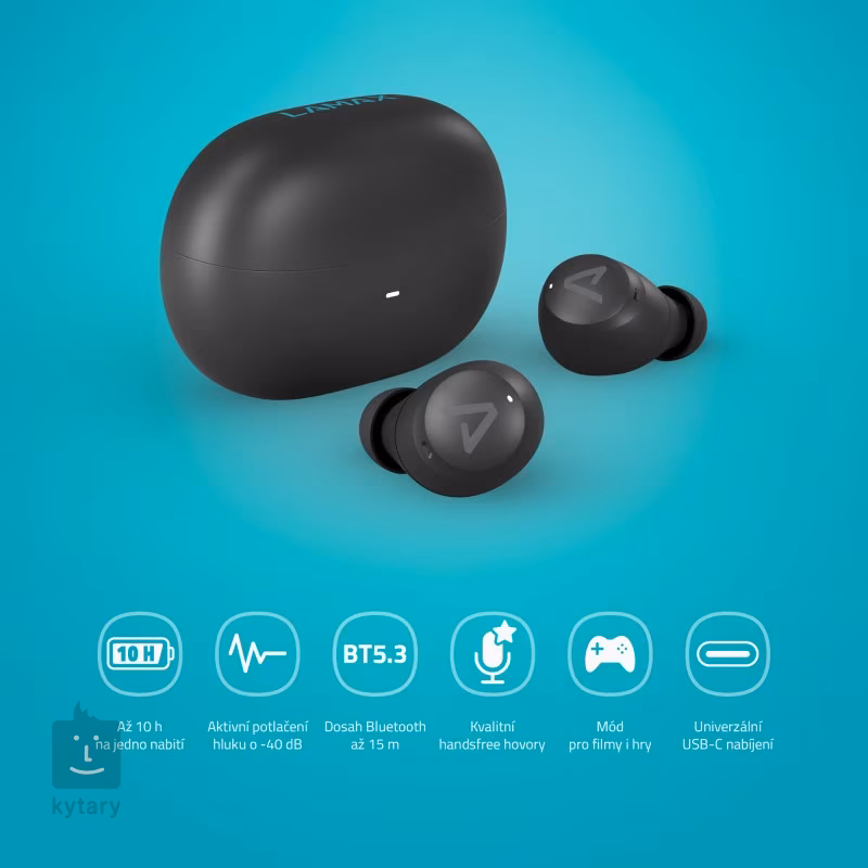 LAMAX Buds1 ANC działają do 10 godzin na jednym ładowaniu, z dodatkowymi 32 godzinami ukrytymi w kompaktowym etui ładującym. Zasilanie jest dostarczane przez złącze USB-C. Słuchawki oferują również intuicyjne sterowanie dotykowe, kompaktową konstrukcję i obsługę asystentów głosowych Siri i Google Assistant. Obsługiwane kodeki AAC i SBC.