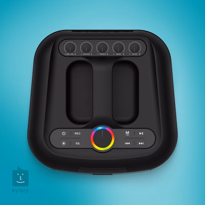 Jeśli mocno imprezujesz lub właśnie zamierzasz wygłosić mowę weselną lub zaprezentować nową piosenkę, PartyKing1 Plus jest wyposażony w bezprzewodowy mikrofon i wejście gitarowe. Możesz nawet nagrać na nim demo, a jeśli nie odpowiada Ci jakość mikrofonu bezprzewodowego, możesz podłączyć własny. Osiem regulowanych efektów świetlnych LED zapewnia odpowiedni nastrój na każdą okazję.