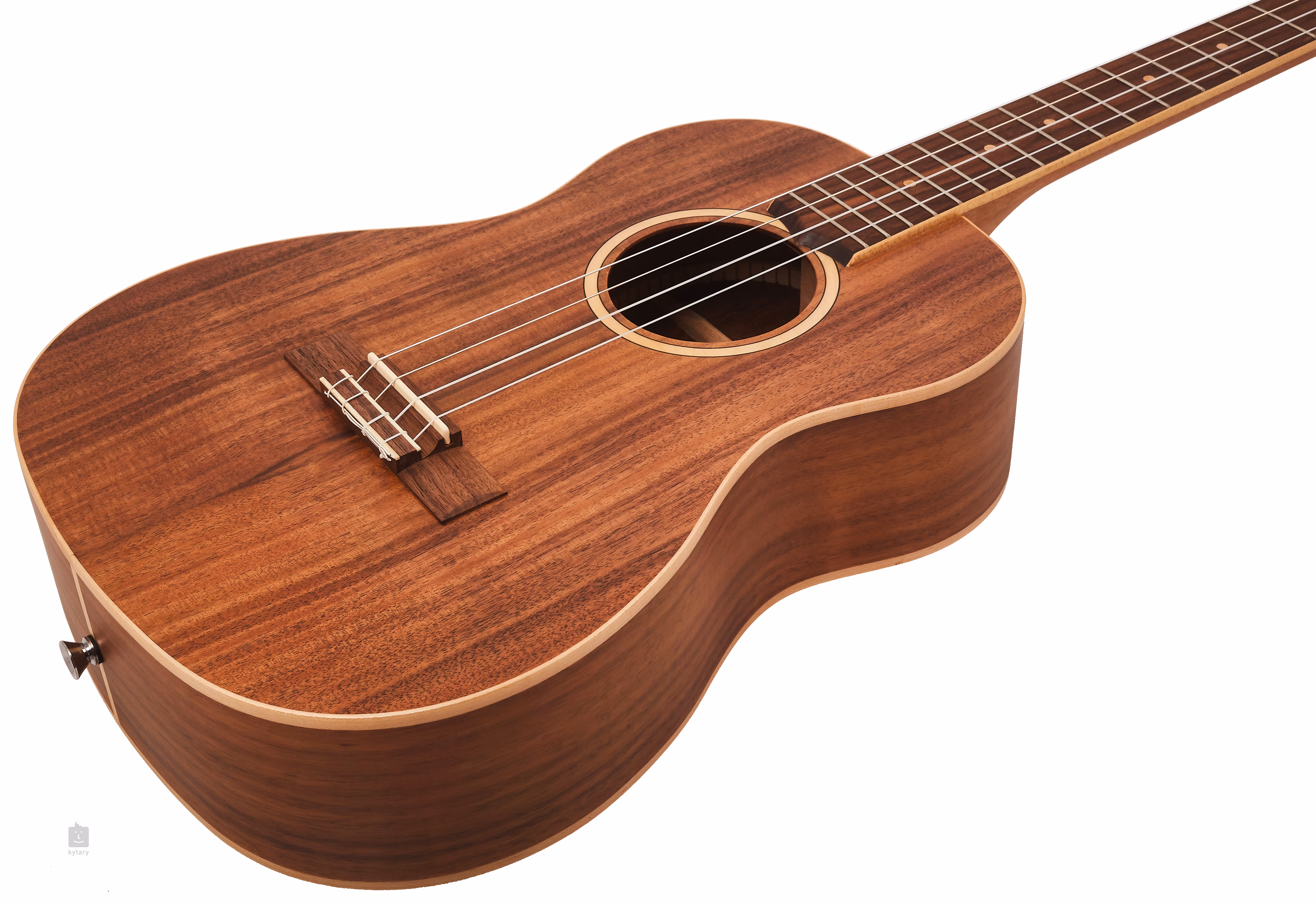 Płyta rezonansowa tego ukulele barytonowego wykonana jest z litego drewna akacjowego, nadając instrumentowi tradycyjny wygląd i ciepłe brzmienie. Orzechowa podstrunnica wyposażona jest w osiemnaście progów ze znacznikami pozycji ułatwiającymi orientację. Szersza szyjka instrumentu i zero progów zapewniają wygodne czucie i ruchy podstrunnicy, a progi i siodełko NuBone XB zapewniają dobry sustain strun. Stabilność strojenia gwarantuje wysokiej jakości otwarta chromowana mechanika. Wrażenie wizualne potęguje klonowa rozeta i binding (korpus i podstrunnica). Ukulele jest dostarczane z pokrowcem o grubości 10 mm.