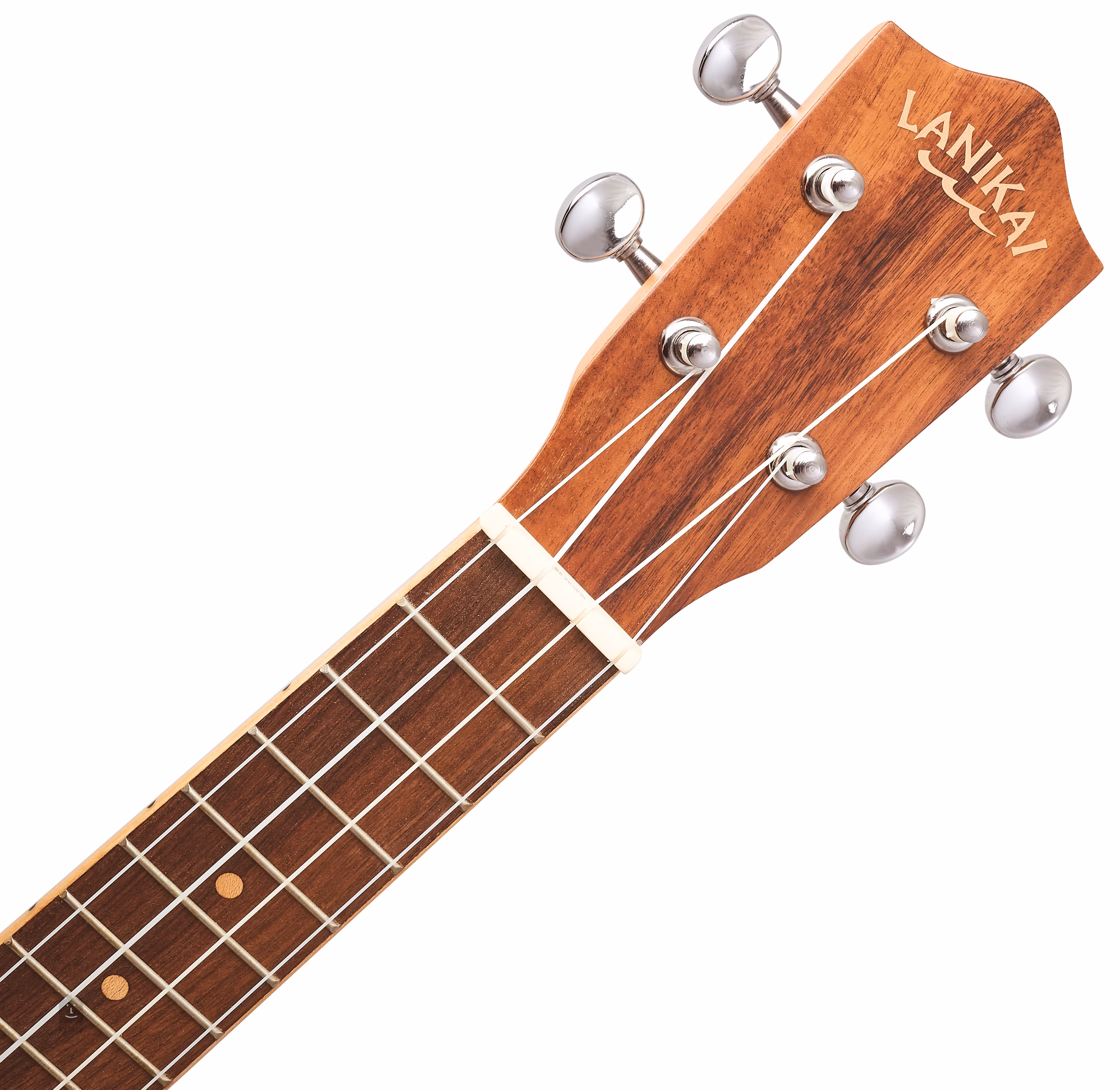 Przednia płyta tego sopranowego ukulele jest wykonana z litego drewna akacjowego, które nadaje instrumentowi tradycyjny wygląd i ciepłe brzmienie. Podstrunnica z orzecha jest wyposażona w dwanaście progów, a orientację ułatwiają oznaczenia pozycyjne. Szerszy gryf instrumentu i zerowy próg zapewniają wygodny dotyk i swobodę poruszania się po gryfie, a zerowy próg i siodełko wykonane z materiału NuBone XB zapewniają strunom dobre wybrzmienie. Stabilność strojenia gwarantują wysokiej jakości otwarte chromowane mechanizmy. Wizualny efekt podkreślają rozeta i obramowanie (korpusu i gryfu) z klonu. Ukulele jest dostarczane z pokrowcem (gig bag) o grubości wyściółki 10 mm. Ukulele marki Lanikai zachwycą swoją niezawodnością, designem i dobrymi właściwościami gry wymagających muzyków, jak i początkujących graczy, którzy wymagają jakości już od pierwszych dźwięków.