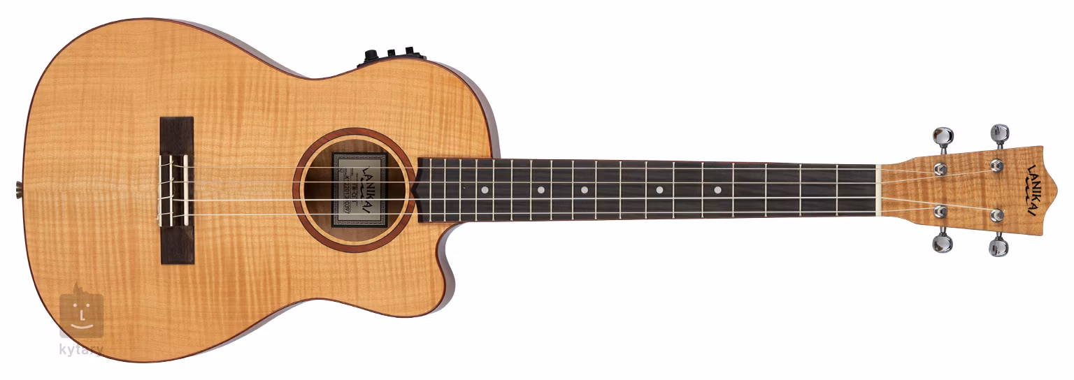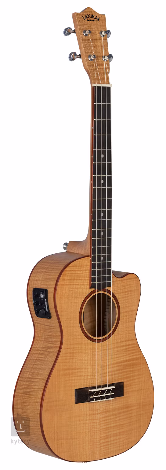 Korpus elektroakustycznego ukulele barytonowego Lanikai Flame Maple Series wykonany jest z laminowanego klonu o charakterystycznym usłojeniu, które nadaje instrumentowi luksusowy wygląd. Do szyjki okoumé przyklejona jest podstrunnica z drewna figowego wyposażona w osiemnaście progów. Przyjemny profil szyjki, szerszy próg zerowy i niższe wycięcie korpusu zapewniają optymalny komfort gry.