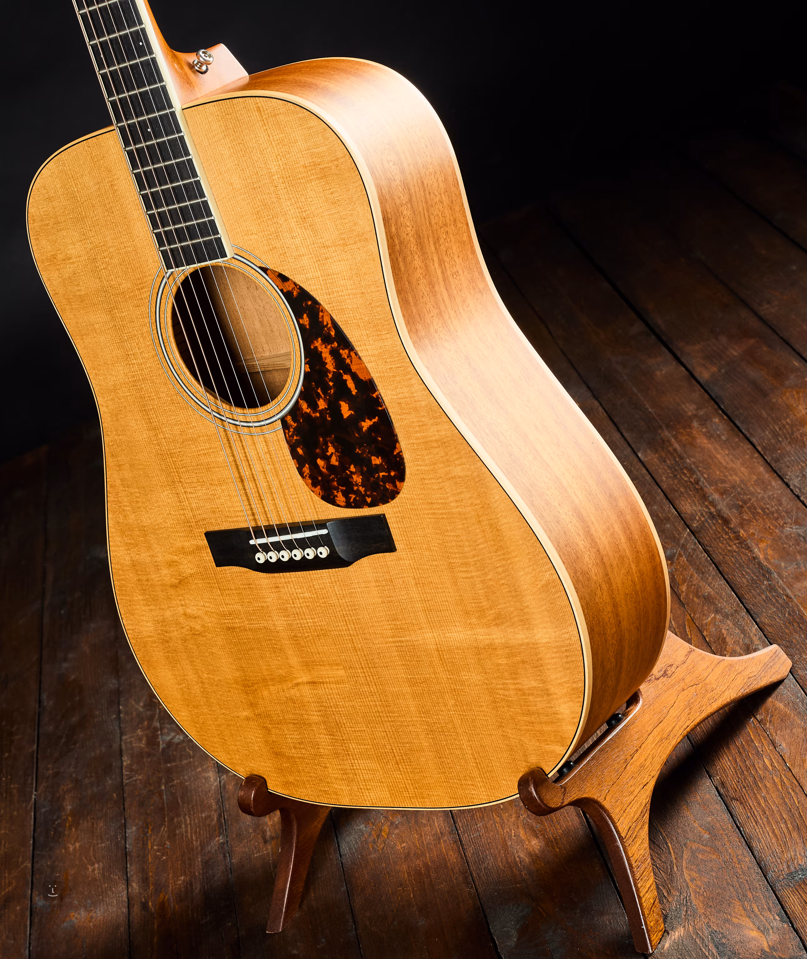 Korpus i szyjka: mahoń afrykański; podstrunnica i główka: heban; top: świerk sitkajski. Podstrunnica i korpus są subtelnie wyłożone klonowym bindingiem, a znaki orientacyjne są zaprojektowane z eleganckimi małymi kropkami. Szyjka wykonana jest z 3 kawałków mahoniu dla dodatkowej stabilności. Wykończenie lakierem jest matowe. Instrument jest dostarczany z oryginalnym futerałem.