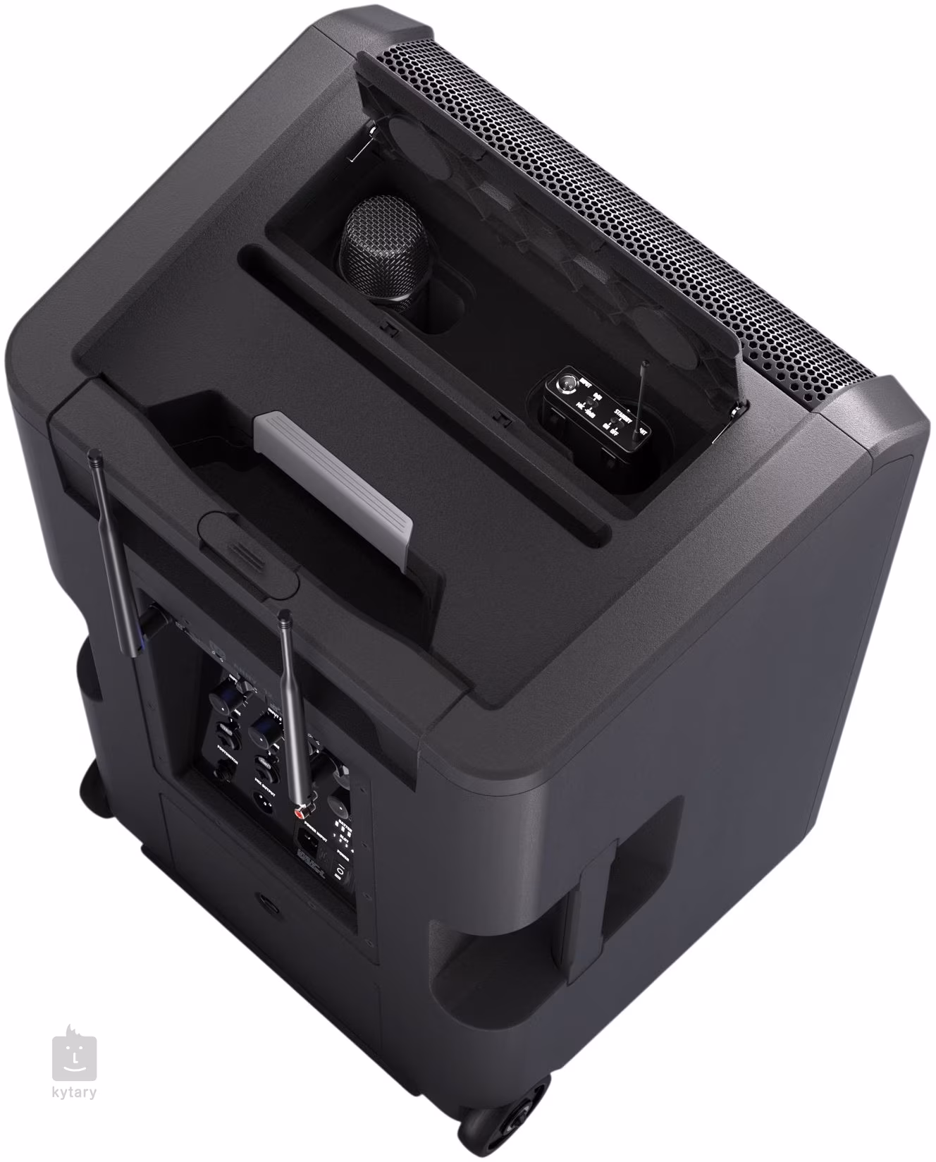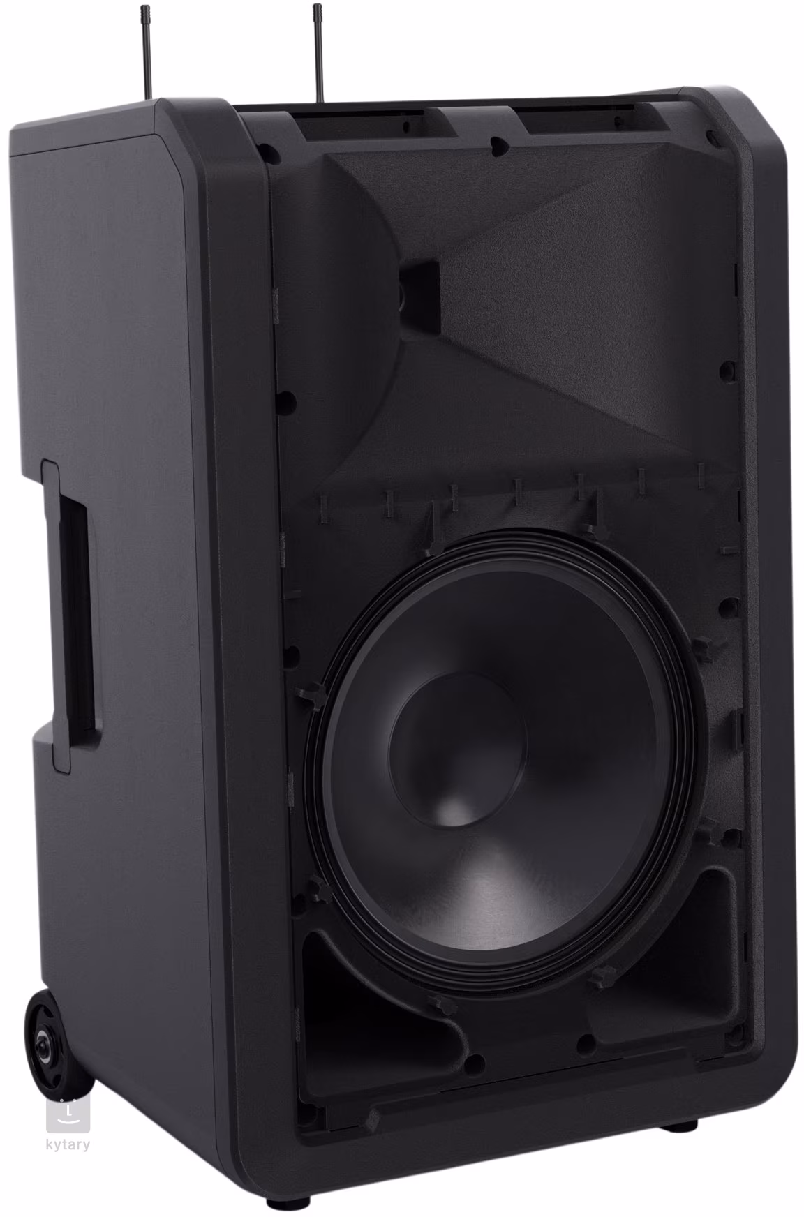 W tej wersji znajdują się dwa mikrofony nagłownikowe, każdy z własnym nadajnikiem bodypack, co znacznie rozszerza możliwości zastosowania – idealne do dialogów, nauczania lub prezentacji zespołowych. Funkcja priority/ducking automatycznie wycisza muzykę podczas mówienia do mikrofonu, zapewniając maksymalną zrozumiałość wypowiedzi. Nie brakuje również wejścia na przełącznik nożny do bezdotykowego sterowania efektami oraz portu USB-C do zasilania urządzeń mobilnych. Dużą zaletą jest zasilanie bateryjne o żywotności do 50 godzin w trybie ECO lub około 5 godzin przy maksymalnej mocy. Dzięki systemowi 4 baterii z funkcją hot-swap można wymieniać baterie bez przerywania pracy. Aby ułatwić obsługę, system jest wyposażony w kółka i teleskopowy uchwyt, dzięki czemu można go wygodnie transportować jak walizkę. Nie brakuje również otworu 35 mm na statyw oraz praktycznego uchwytu na tablet lub smartfon.