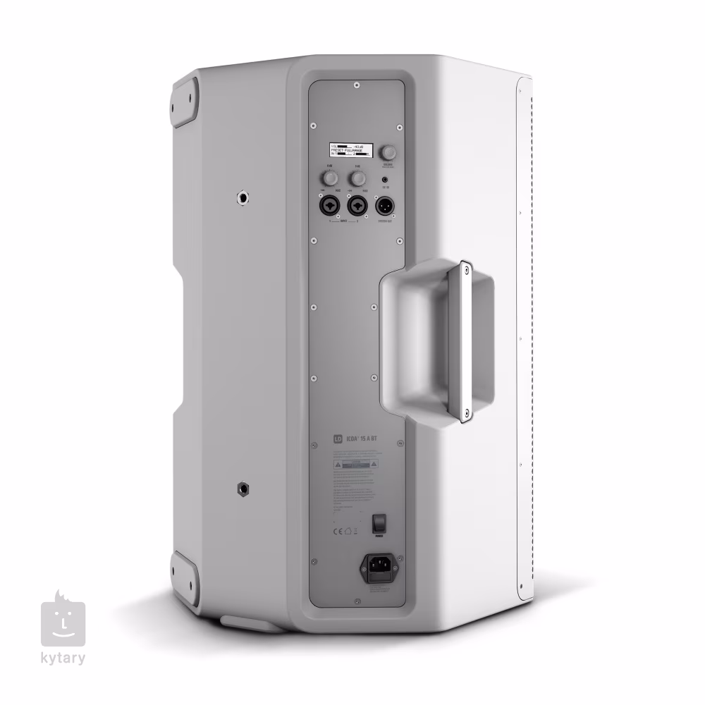 ICOA 12 A W mieści 15" głośnik niskotonowy, który wraz ze wzmacniaczem klasy D oferuje moc do 300W RMS. Na tylnym panelu sterowania znajduje się para wejść combo, wejście stereo dla odtwarzacza muzycznego oraz wyjście XLR. Sygnał wejściowy możesz dostosować za pomocą czterech presetów Dynx DSP, trzypasmowego EQ oraz efektu Delay. Dostosuj charakter dźwięku za pomocą dwóch potencjometrów obrotowych i regulatora głośności. Głośnik można zamontować w standardowym stojaku głośnikowym (36 mm). Na spodzie znajdziesz dwa otwory, jeden z 0° i drugi z 5° pochyleniem dla optymalnej regulacji. Możesz również skorzystać ze skośnej konstrukcji, aby uzyskać aktywny monitor do występów na żywo. Wygodne i łatwe przenoszenie gwarantują poczwórne aluminiowe uchwyty.