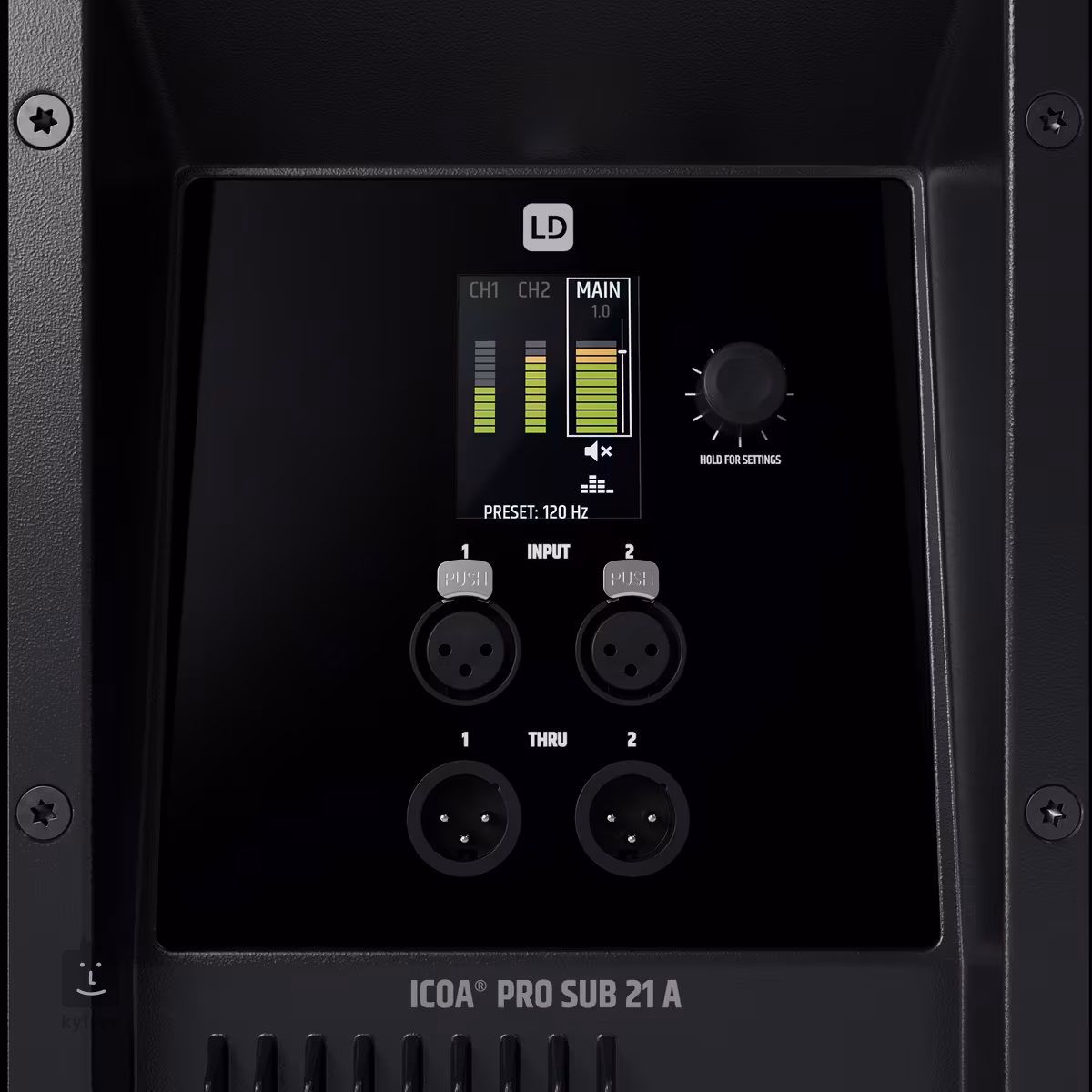 Potężny wzmacniacz klasy D osiąga maksymalne ciśnienie akustyczne 136 dB SPL, zapewniając ogromną rezerwę mocy i niezawodną reprodukcję częstotliwości basowych. Cztery zoptymalizowane porty bass-reflex zapewniają bogate basy do 29 Hz. Najnowocześniejszy procesor DSP SysCore z filtrami FIR/IIR i zaawansowanymi ogranicznikami gwarantuje dźwięk bez zniekształceń nawet przy bardzo wysokim poziomie głośności. Dzięki czteropasmowemu korektorowi parametrycznemu, funkcji opóźnienia i trzem wybieranym częstotliwościom podziału (80 Hz, 100 Hz i 120 Hz), subwoofer można elastycznie dostosować do różnych sytuacji. Dostępne są również ustawienia wstępne dla różnych zastosowań, takich jak monitorowanie niskich opóźnień lub tryb kardioidalny.