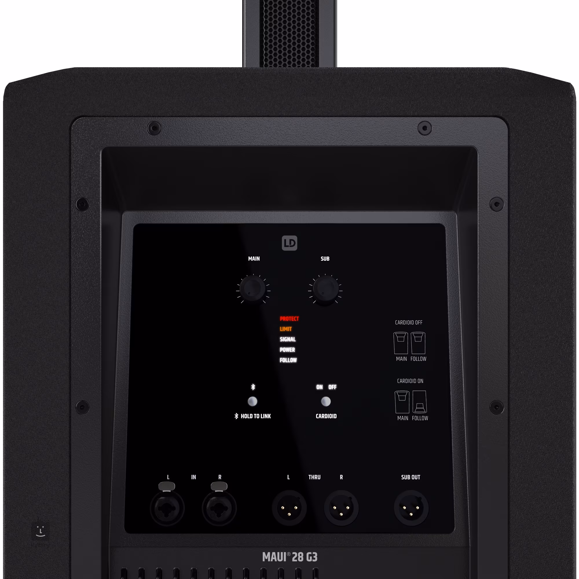 MAUI 28 G3 to wszechstronny kompaktowy system PA o mocy 1030 W RMS, z 12-calowym głośnikiem niskotonowym i zoptymalizowaną konstrukcją z portami bass-reflex dla lepszej odpowiedzi basów, dwunastoma 3,5-calowymi głośnikami średniotonowymi i dwucalowymi głośnikami wysokotonowymi, kardioidalną konfiguracją głośników kolumnowych, kodowaniem AAC dla strumieniowania Bluetooth HD 5.0, technologia DynX DSP zapewniająca niezakłócony dźwięk nawet przy wyższym poziomie głośności oraz system automatycznego wykrywania zapewniający szybką i łatwą konfigurację oraz kontrolę ustawień. Konstrukcja subwoofera wykonana jest ze sklejki brzozowej o grubości 15 mm, natomiast konstrukcja kolumny głośnikowej wykonana jest z malowanego proszkowo aluminium. Cztery uchwyty ułatwiają przenoszenie subwoofera.