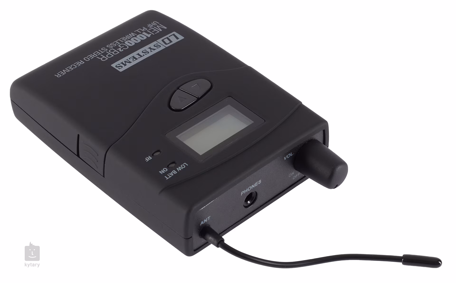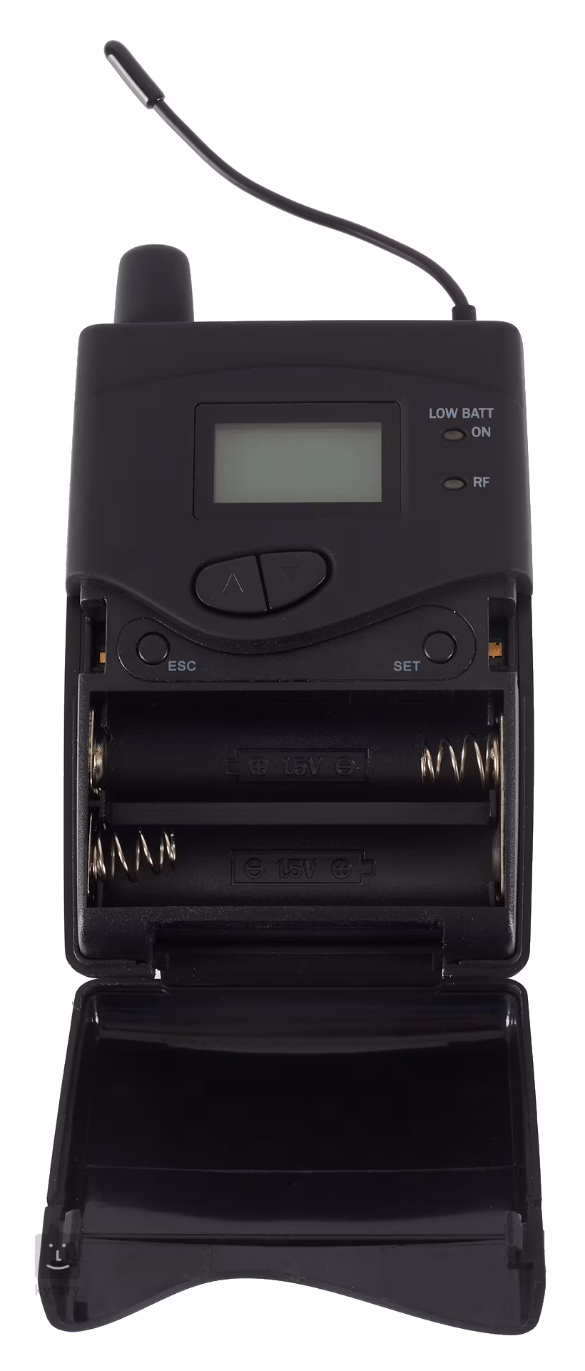 Odbiorniki są zasilane bateriami AA o żywotności do 12 godzin. Czytelny wyświetlacz pokazuje wszystkie istotne informacje. Słuchawki są bardzo wygodne i wyposażone w wymienne wkładki douszne, które można dopasować do konkretnego ucha.