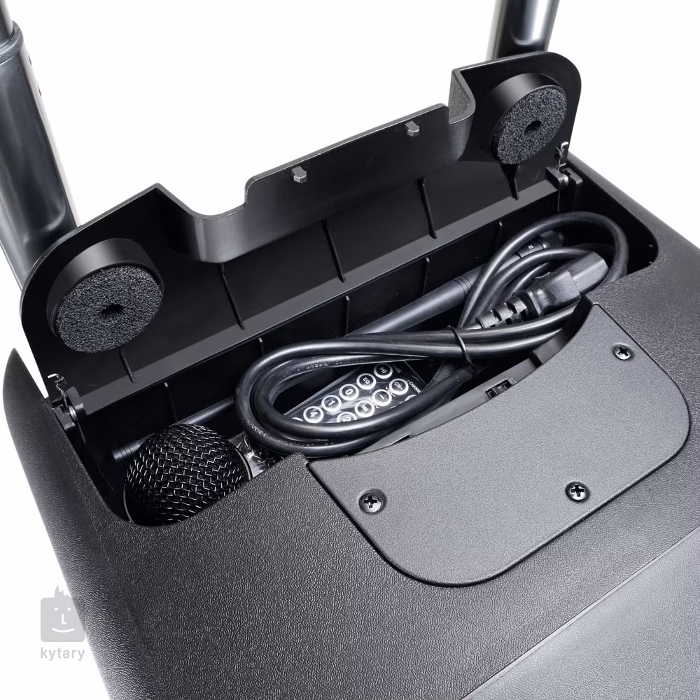 LD Systems Roadbuddy jest łatwy do przenoszenia dzięki wbudowanym kółkom i wysuwanemu uchwytowi. Poręczny schowek na górze zapewnia miejsce na maksymalnie dwa mikrofony ręczne. Obudowa tego lekkiego urządzenia została zaprojektowana tak, aby pomieścić otwór na statyw 35 mm.