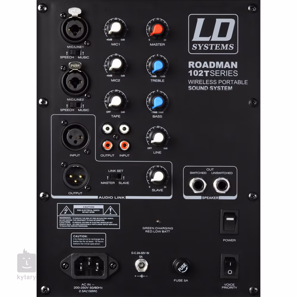 Roadman 102 jest potężnym, mobilnym systemem PA, który może być zasilany akumulatorami do użytku w miejscach bez dostępu do zasilania sieciowego. Można podłączyć dwa mikrofony lub instrumenty, a wbudowany odtwarzacz CD z wejściem USB i SD może być używany do odtwarzania muzyki lub podkładów muzycznych. Do transmisji bezprzewodowej głośnik wyposażony jest w odłączaną antenę UHF. Zestaw ten zawiera mikrofon nagłowny z nadajnikiem ręcznym.