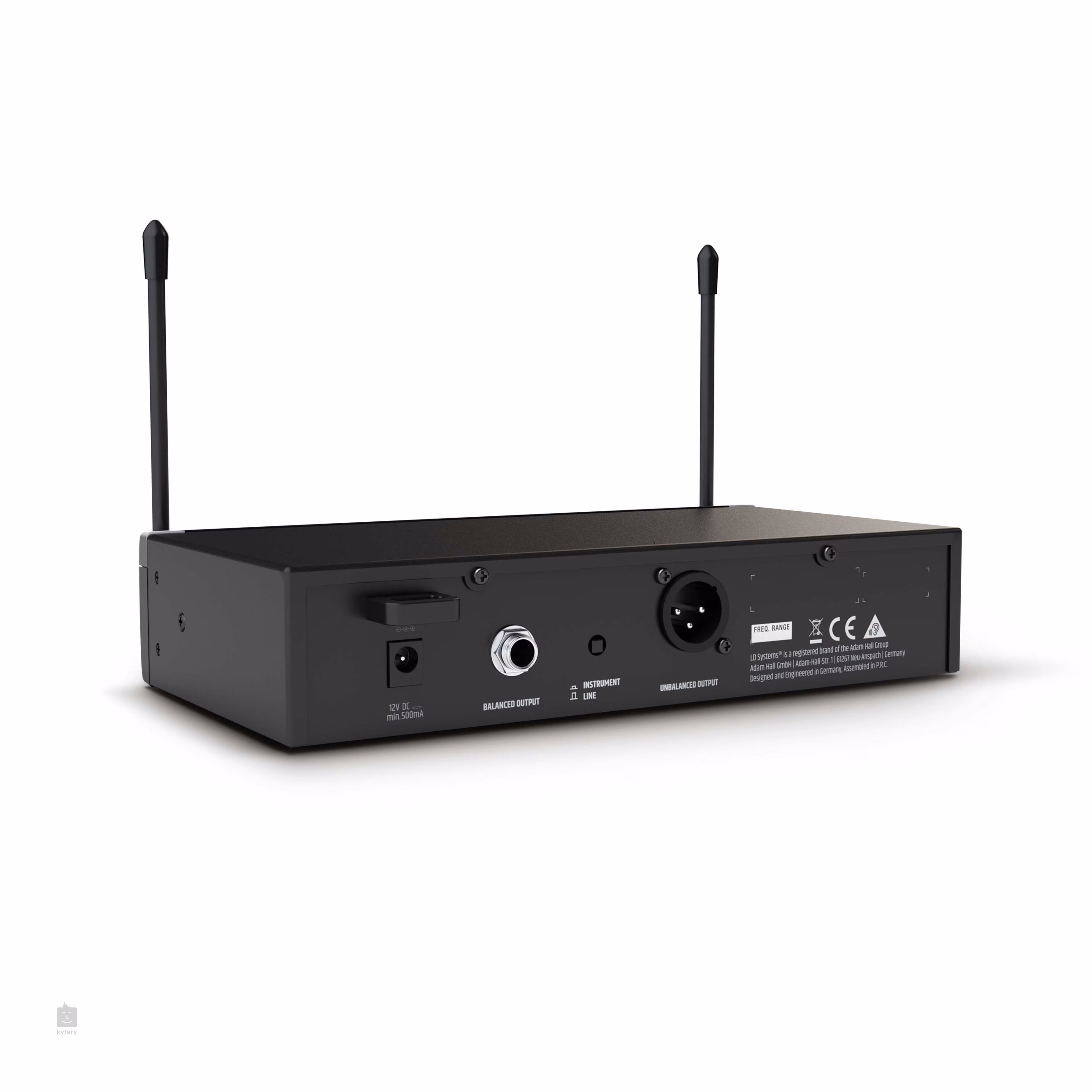 Mikrofon dynamiczny wykonany jest z wytrzymałej stali, posiada kardioidalną charakterystykę kierunkową oraz przełącznik On/Off. Zasilany jest dwiema bateriami AA, które pozwalają na 10 godzin pracy w trybie czuwania. Odbiornik oferuje wybór 12 kanałów, moc nadawania wynosi 10 mW i można połączyć do sześciu zestawów bezprzewodowych jednocześnie. Odbiornik posiada również technologię ASC do synchronizacji pomiędzy dwoma urządzeniami, czytelny wyświetlacz LCD oraz regulację głośności. Z tyłu znajdziemy przełącznik Instrument/Line, wyjście XLR i Jack 6.3 mm TS do podłączenia do aktywnego PA lub konsoli mikserskiej. W zestawie znajdują się śruby do montażu na stojaku.
