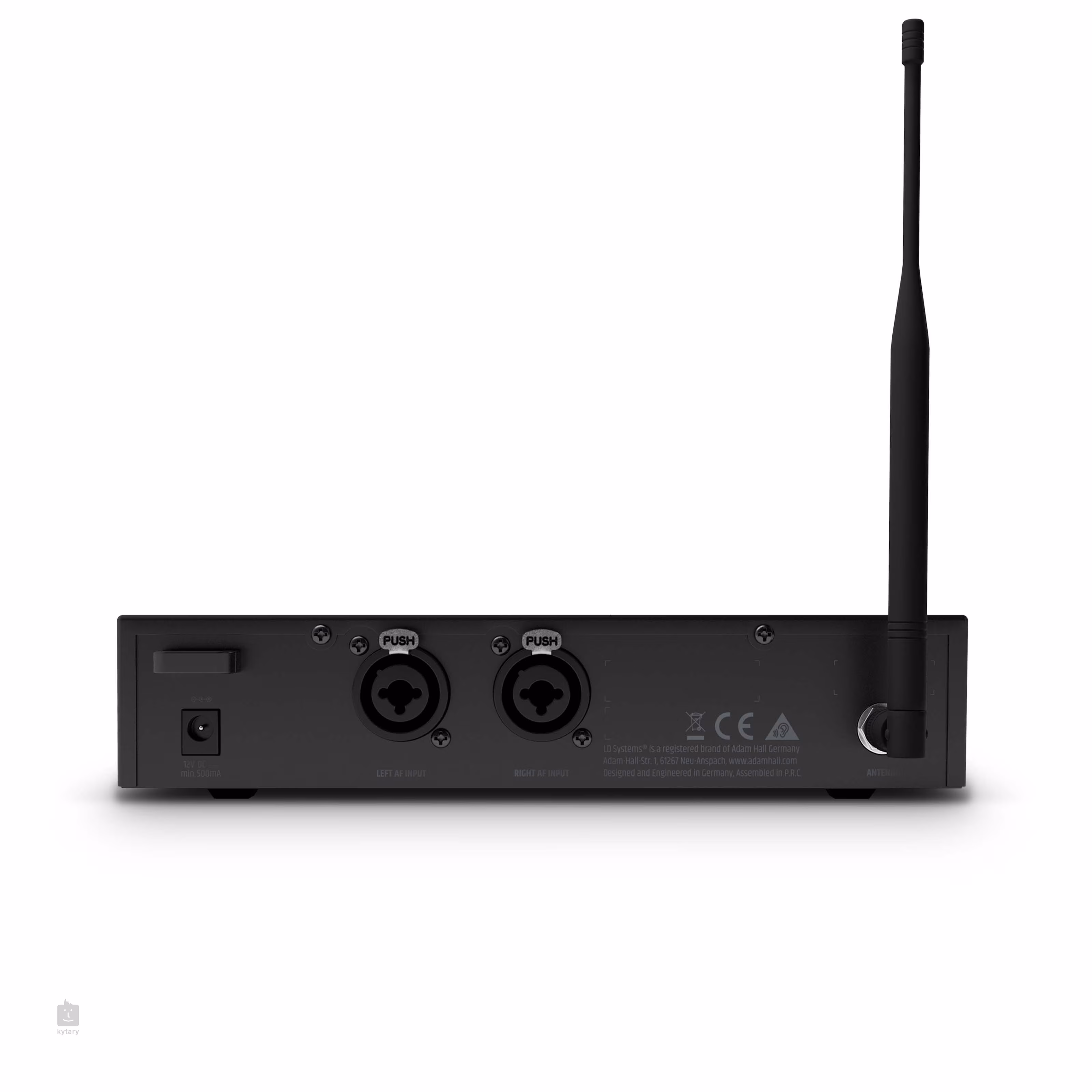 Nadajnik oferuje łącznie 12 kanałów, moc transmisji 10 mW i możliwość podłączenia do sześciu zestawów bezprzewodowych jednocześnie. Posiada również przełącznik trybu stereo i mono, czytelny wyświetlacz LCD i dwa regulatory głośności dla prawego i lewego kanału. Z tyłu znajdują się dwa wejścia combo XLR/Jack oraz złącze BNC do podłączenia anteny zewnętrznej.