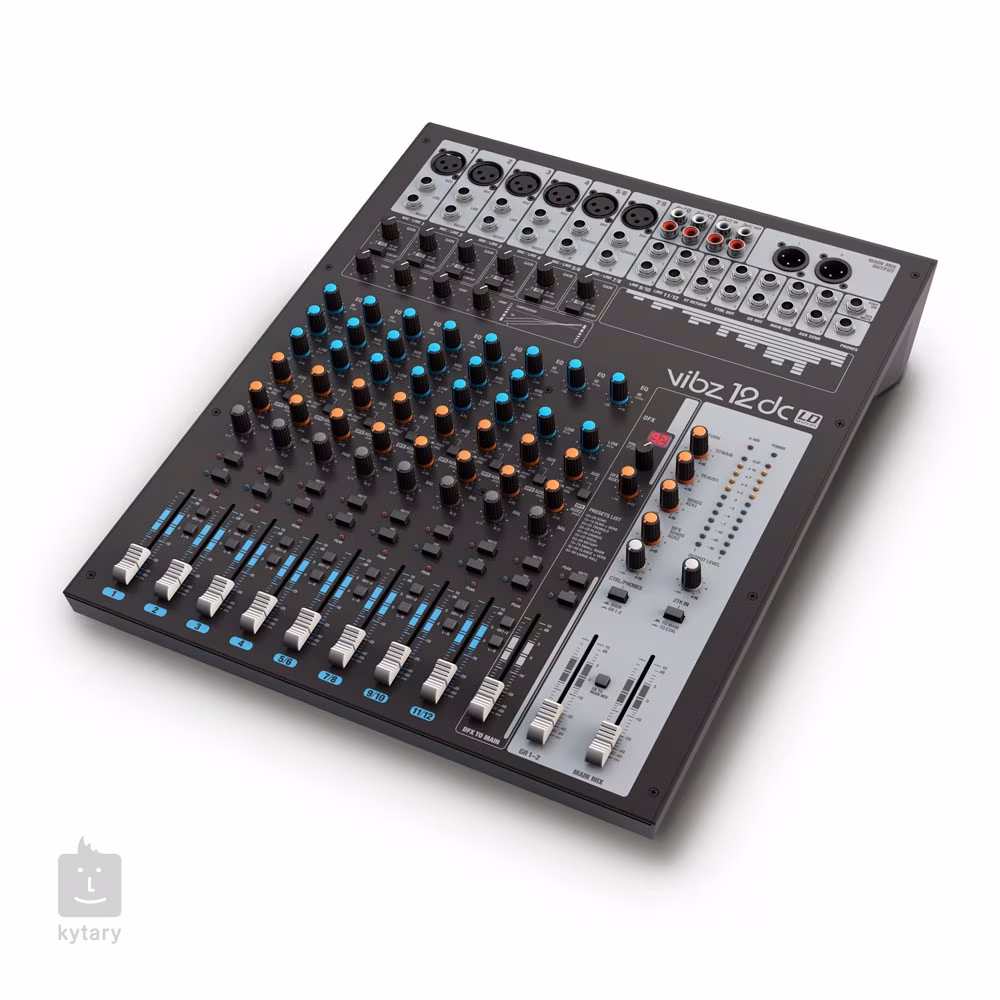 VIBZ 12 DC oferuje 6 wejść mikrofonowych z wysokiej jakości przedwzmacniaczami, wejścia liniowe stereo kompatybilne z mono, kompresor z płynną regulacją na pierwszych czterech kanałach, cztery wejścia insertowe i 100 efektów cyfrowych. Dzięki temu jest to bardzo elastyczna konsoleta nadająca się zarówno do nagrywania, jak i nagrywania na żywo.