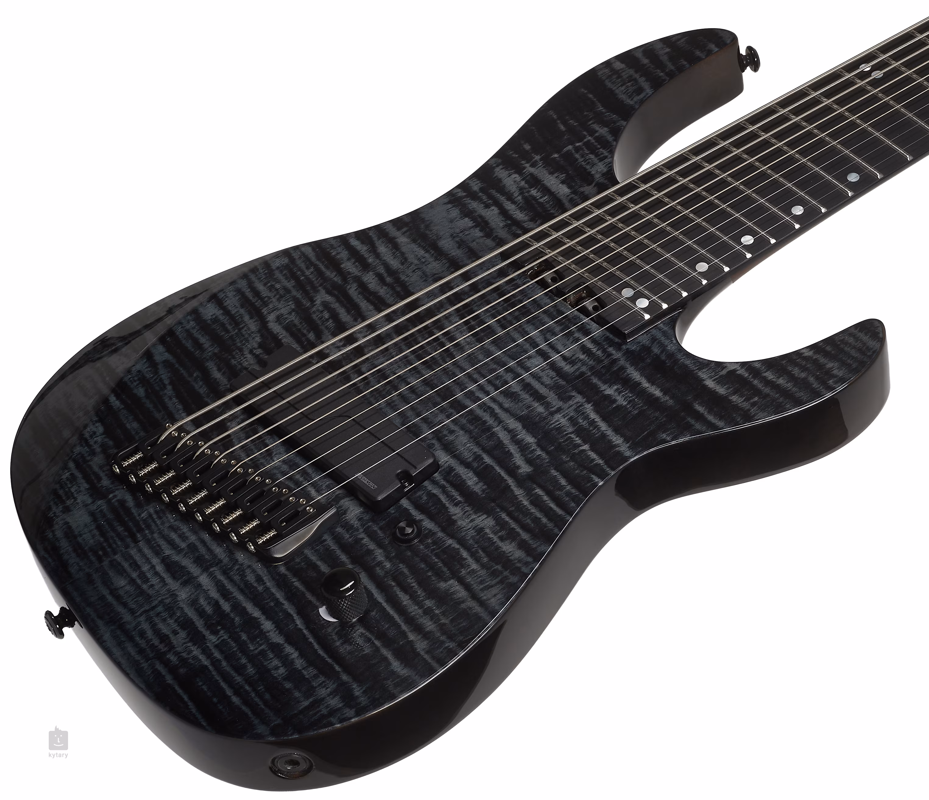 Dziewięciostrunowa gitara Ninja oferuje konstrukcję z efektowną okleiną z klonu płatkowego, ergonomicznie ukształtowanym korpusem, atrakcyjnym błyszczącym wykończeniem Black Flame i węższym, szybkim gryfem z pięciu kawałków klonu i wenge, głębiej osadzonym w korpusie (konstrukcja set-thru). Szyjkę wzmacnia dwukierunkowe wzmocnienie. Podstrunnica z nowoczesnego materiału kompozytowego richlite jest wyposażona w dwadzieścia cztery progi ze stali nierdzewnej w rozmiarze Jumbo.