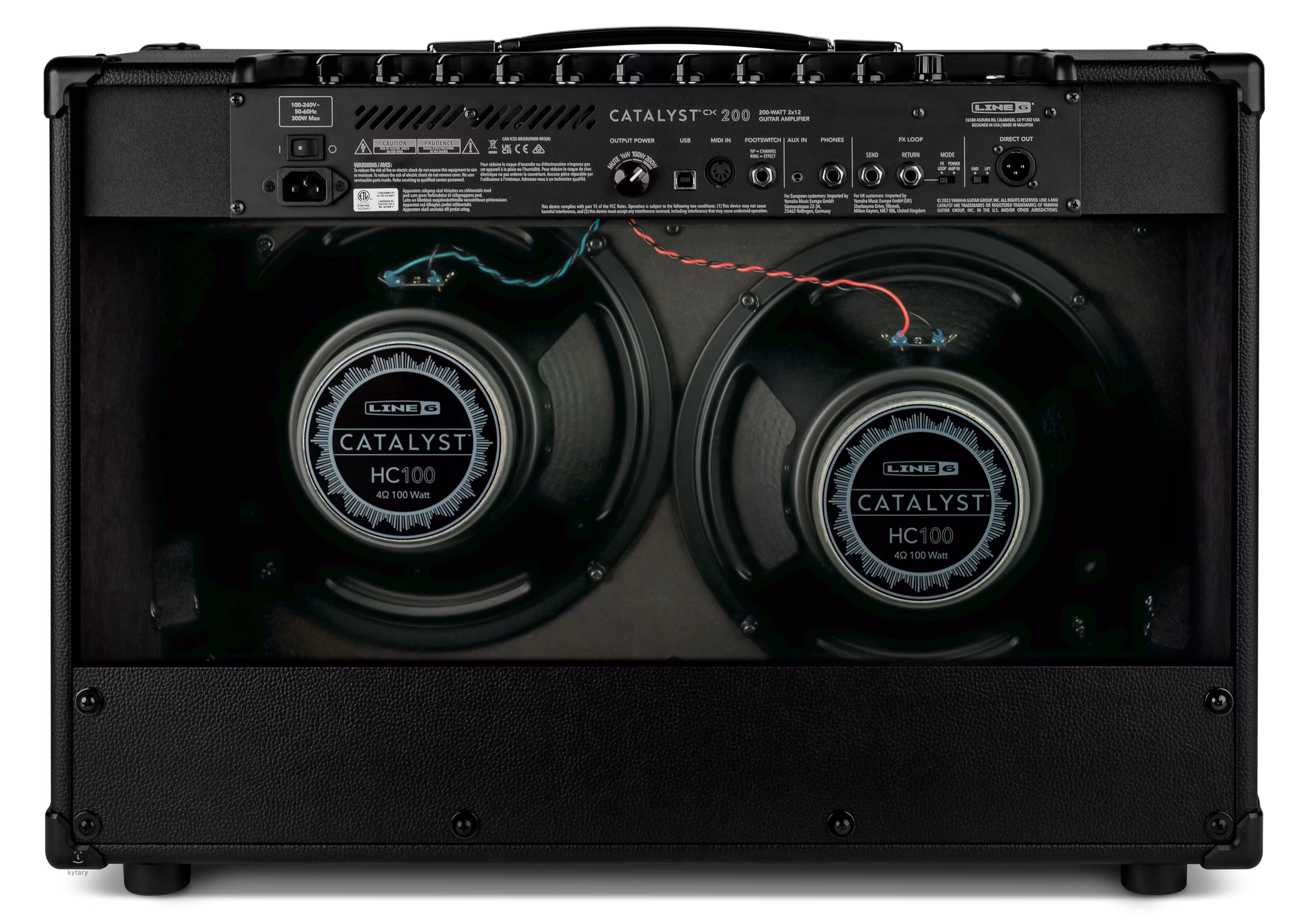 Tylny panel oferuje wyjście liniowe XLR, pętlę efektów z możliwością użycia Return jako wejścia poweramp dla modelarzy, tj. ominięcia przedwzmacniacza i użycia combo jako aktywnego głośnika, wejście MIDI IN do sterowania za pomocą zewnętrznych kontrolerów MIDI, czterokanałowy interfejs USB, wejście Aux in dla zewnętrznych źródeł dźwięku, wyjście słuchawkowe i wejście przełącznika nożnego (LFS2 nie jest dołączony). Głębsze możliwości edycji parametrów oferuje bezpłatna aplikacja Catalyst Edit na komputery PC i urządzenia mobilne.