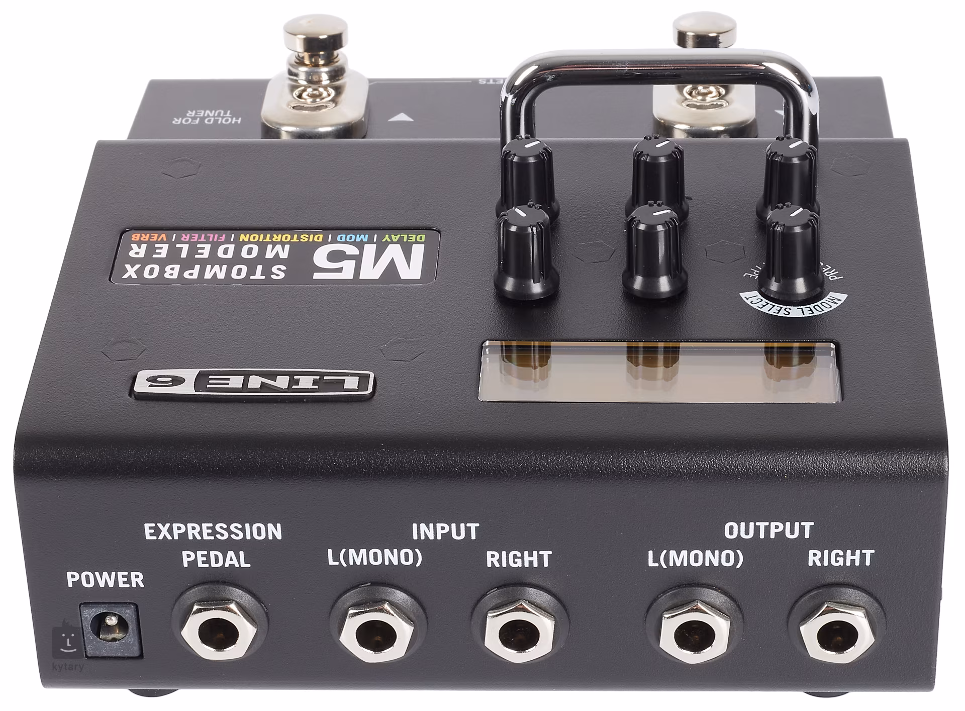 M5 jest raczej niższym modelem w tej serii, ale mimo to jest dość w pełni funkcjonalny. Oto krótki przegląd: 109 różnych efektów, wyświetlacz, Tap-Tempo, 6 potencjometrów, tuner chromatyczny, true-bypass, pełne stereo, MIDI-in i -thru, pętla efektów, wejście pedału ekspresji, 2 przełączniki. Wszystko w jednym urządzeniu.
