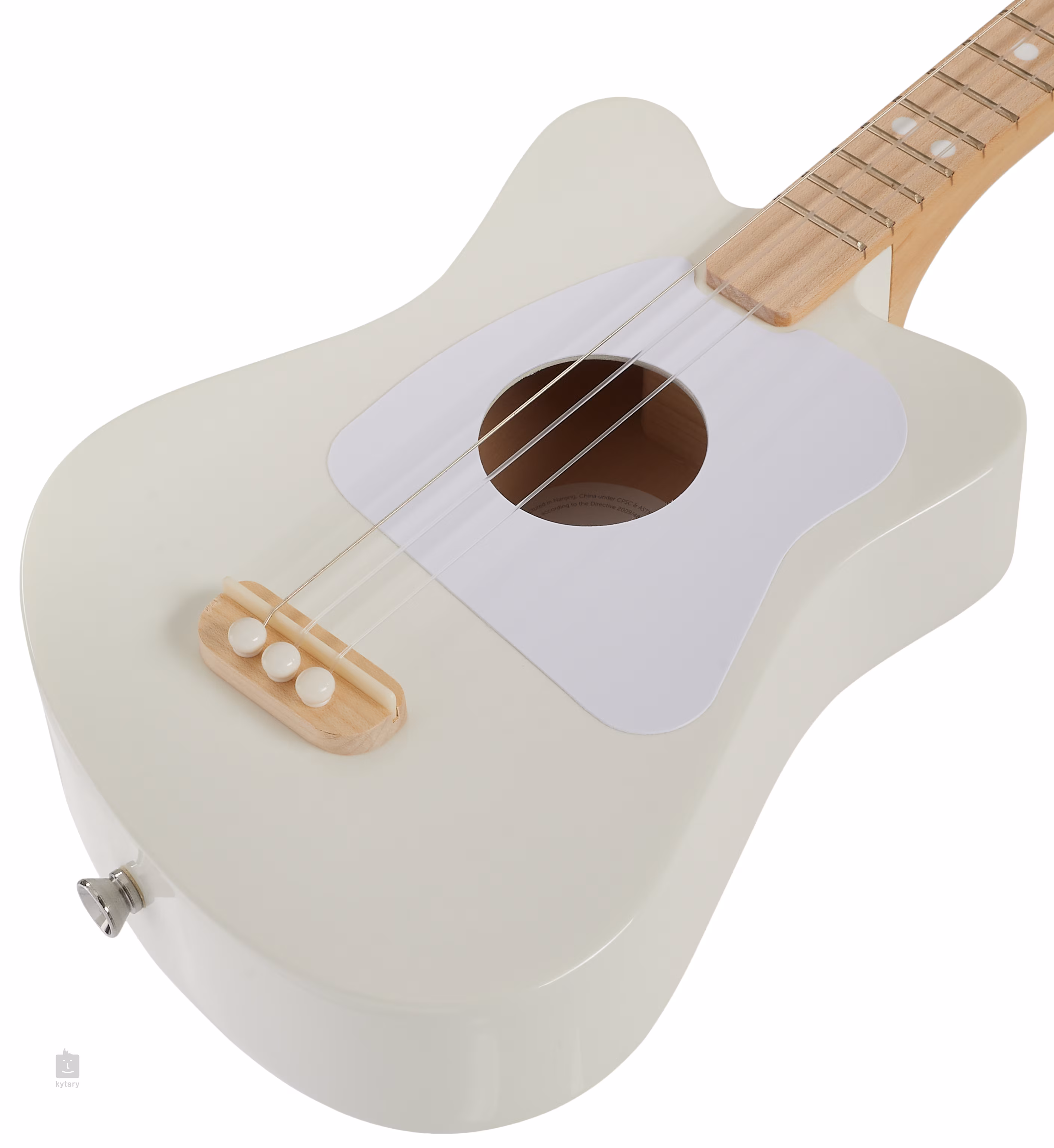Loog Mini Acoustic White to trzystrunowa gitara akustyczna dla dzieci porównywalna wielkością do ukulele. Jest to instrument z nylonowymi strunami i standardowym strojem gitarowym (G-H-E), odpowiedni dla dzieci od trzeciego roku życia. Dzięki Loog Mini Acoustic dzieci będą dobrze przygotowane do późniejszego przejścia na większą gitarę sześciostrunową.