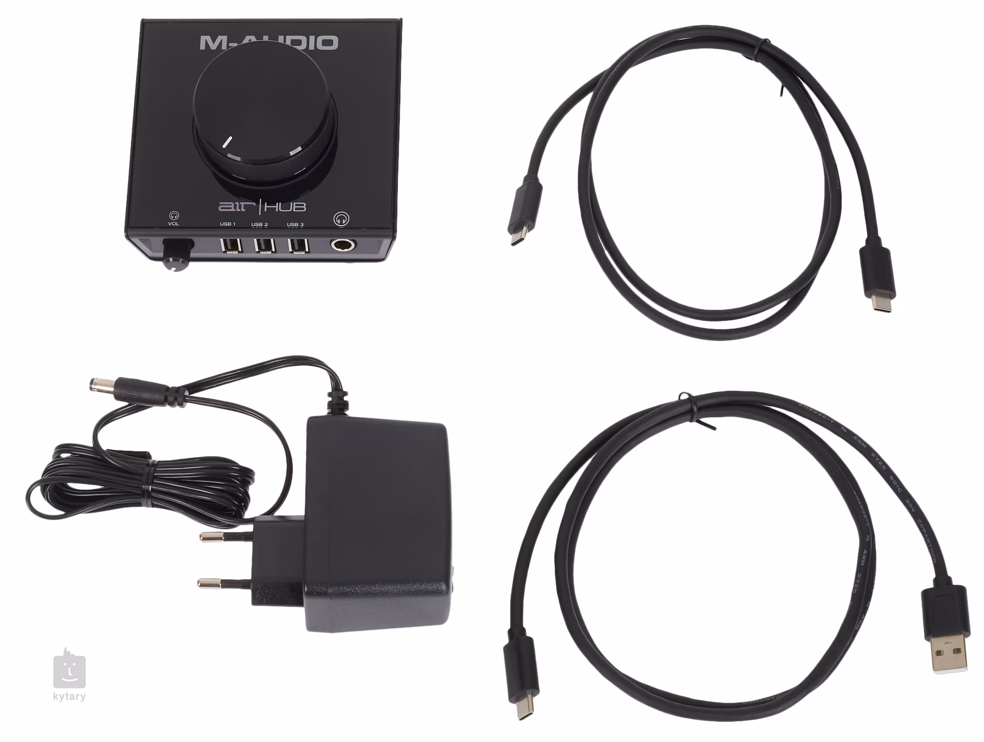 M-Audio AIR/Hub Hub jest najbardziej kompaktowym członkiem nowej serii AIR, oferuje jakość dźwięku 96kHz/24 bit i nadaje się do szczegółowego monitorowania podczas nagrywania lub postprodukcji Twoich nagrań. Na przednim panelu znajdują się trzy porty USB do podłączenia smartfonów, pendrive'ów i urządzeń muzycznych z wyjściem USB, potencjometr Volume dla słuchawek oraz wyjście słuchawkowe do pracy w nocy. Na tylnym panelu znajduje się wyjście stereo dla monitorów studyjnych oraz ultraszybki port USB (C) dla komputera lub laptopa. Górny panel kontrolny oferuje następnie solidne koła wolumetryczne do precyzyjnego monitorowania. W zestawie znajdują się dwa kable USB, adapter i pakiet oprogramowania.