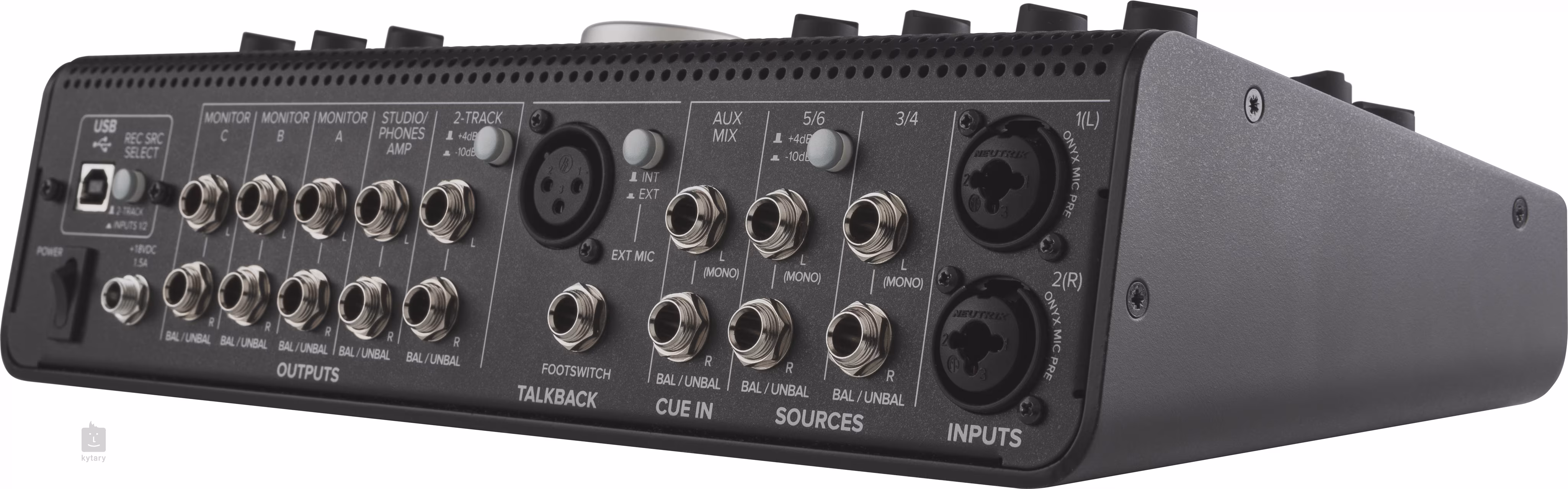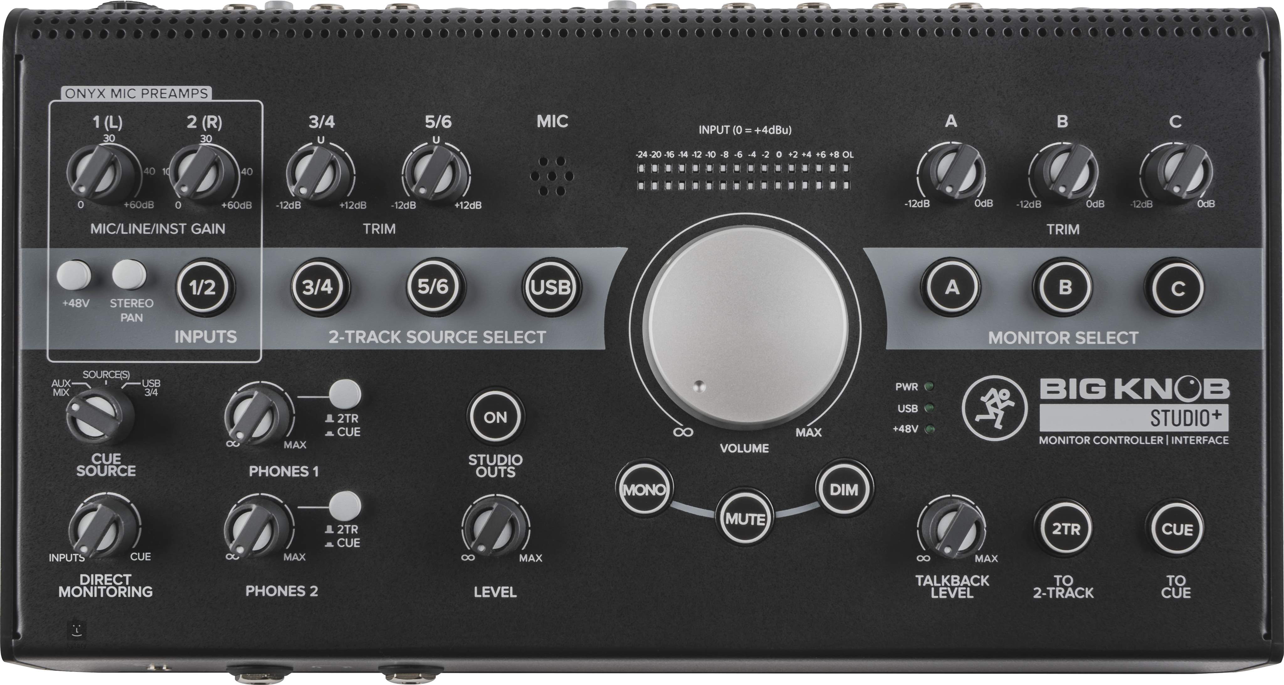 Do wyboru są trzy sygnały i dwie pary monitorów studyjnych. Bezpośrednio na przednim panelu znajduje się wejście 3,5 mm do podłączenia telefonów i tabletów oraz dwa wyjścia słuchawkowe. Wszystkie wejścia i wyjścia mają własne regulatory wzmocnienia/głośności, a także Mono, Mute i Dim.