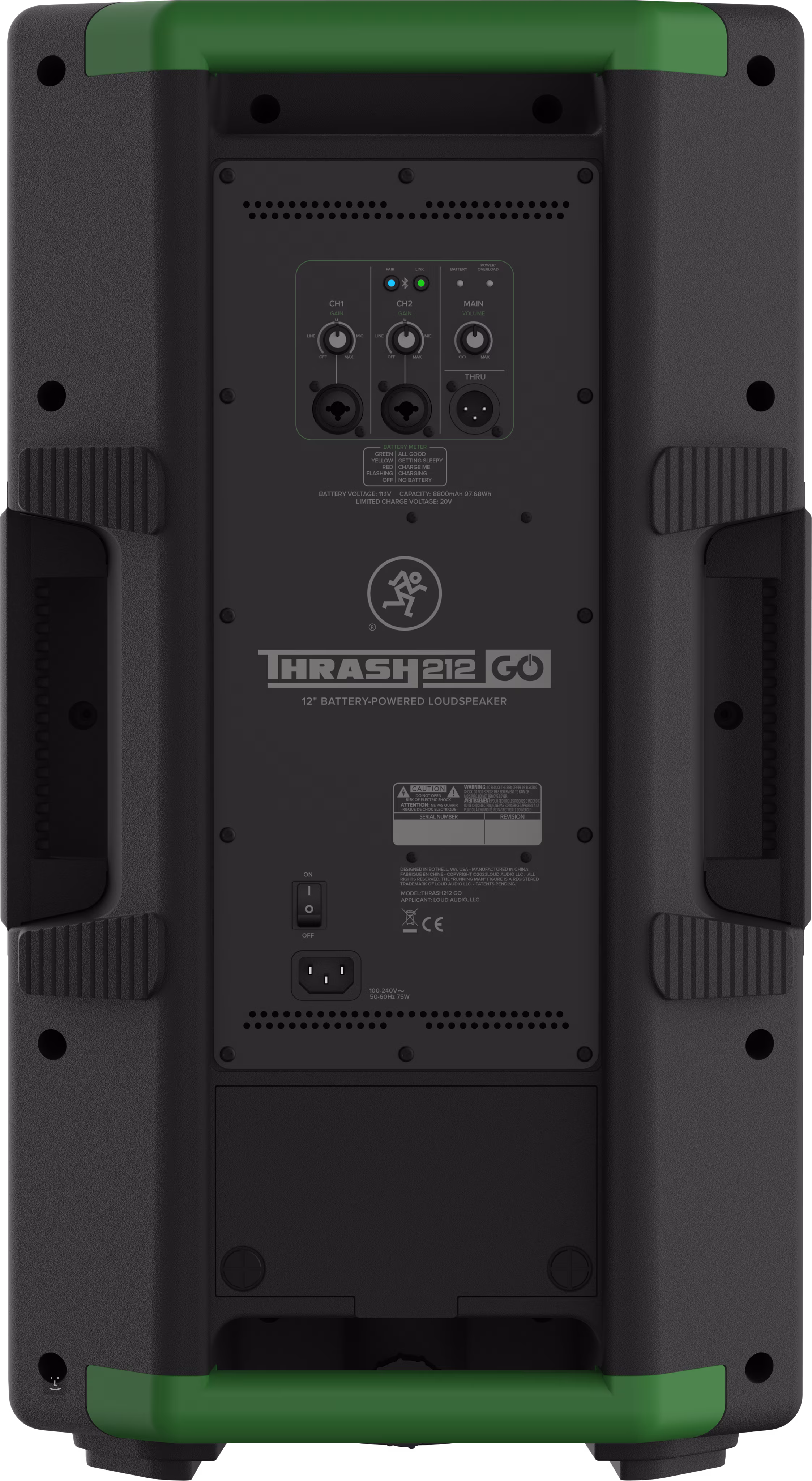 Zasilany bateryjnie Thrash 212 GO łączy w sobie zalety aktywnego głośnika ze wzmacniaczem klasy D i głośnikiem Bluetooth. Posiada 12-calowy głośnik niskotonowy i 1-calowy głośnik wysokotonowy, 300 W mocy, do dziesięciu godzin pracy na jednym ładowaniu akumulatora, dwa połączone wejścia XLR/TRS z oddzielnymi regulatorami głośności oraz wyjście XLR. Skrzynkę można umieścić na statywie głośnikowym lub wykorzystać jej ścięty kształt jako monitor sceniczny. Cztery uchwyty zapewniają wygodny i bezpieczny transport między produkcjami.