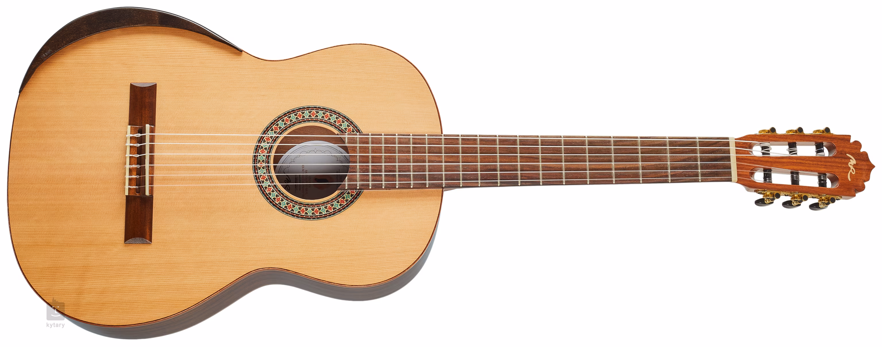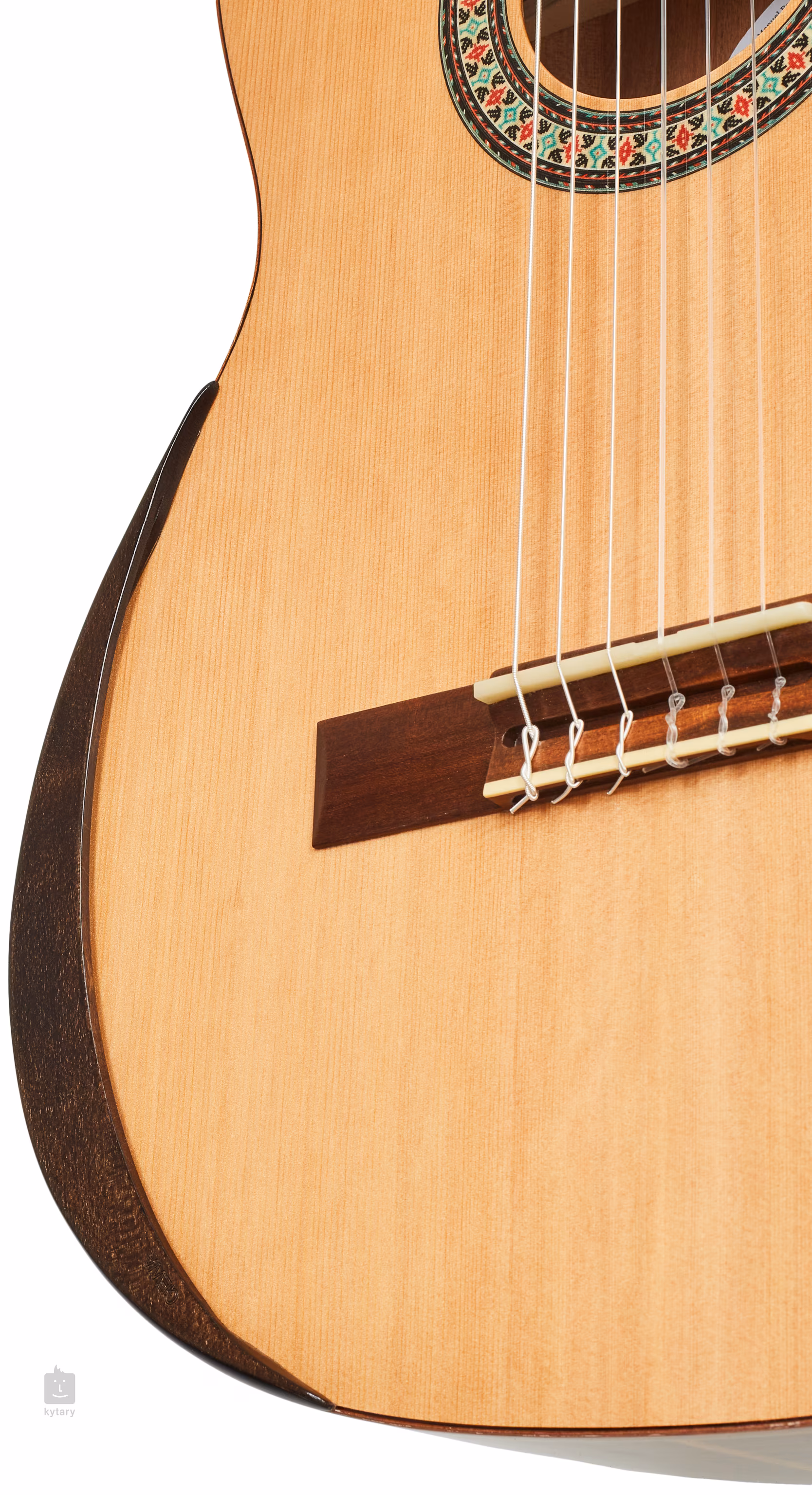 Owalna podstrunnica jest przyklejona do mahoniowej szyjki. Stabilne strojenie gwarantuje mocowanie strun za pomocą zerowych i kompensowanych progów siodełkowych w pozłacanych mechanizmach bez liry z czarnymi kołkami i podstrunnicą ovangkol. Stylowe wykonanie podkreśla oryginalna hiszpańska podstawa szyjki, podpórka na ramię, fornir pau ferro na główce i błyszczący lakier poliuretanowy.