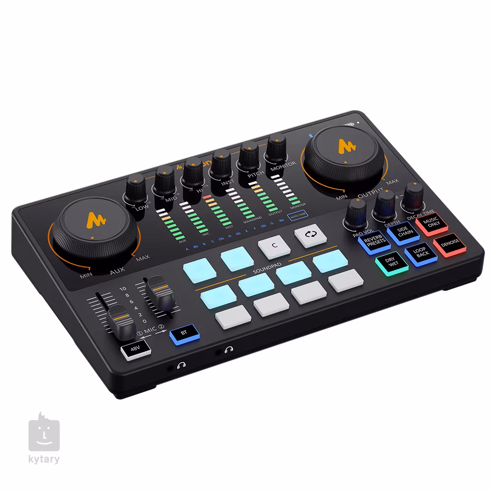 Działa jako karta dźwiękowa USB oraz jako stacja miksująca z dwoma niezależnymi ścieżkami. Posiada jedno wejście mikrofonowe combo XLR/TRS, wejście liniowe dla instrumentu oraz dwa wejścia Jack 3,5mm, które można wykorzystać do odtwarzania muzyki w tle lub podłączyć np. mikrofon klapowy. Zarówno akompaniament, jak i mikrofony mają swoje niezależne regulatory głośności, więc możesz dostosować ich poziom do własnych potrzeb.