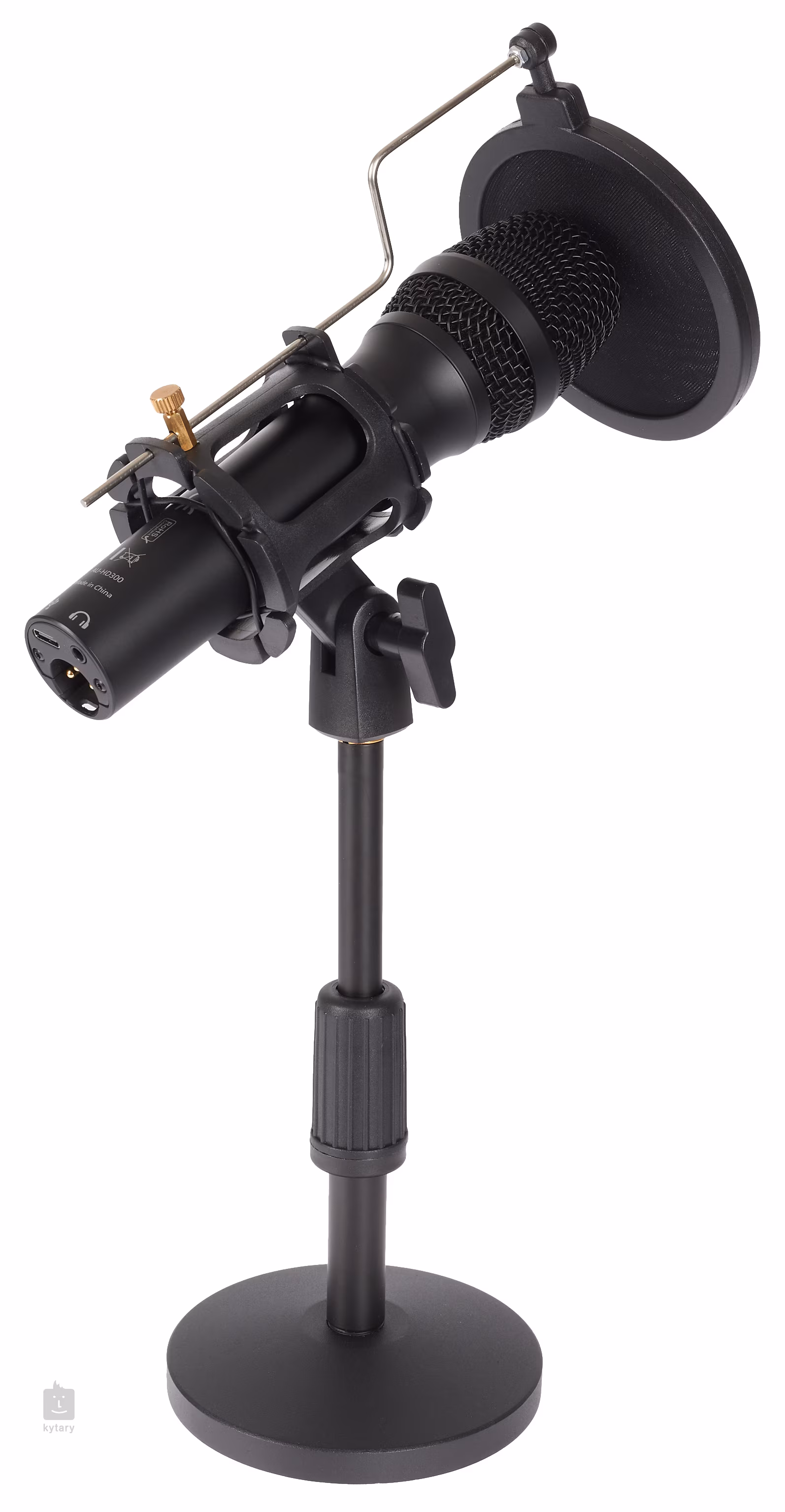 Mikrofon posiada złącze XLR do klasycznego interfejsu audio oraz port USB do podłączenia do komputera lub laptopa bez konieczności instalowania sterownika. Mikrofon posiada również regulację głośności, przełącznik On/Off oraz wyjście słuchawkowe do szczegółowego monitorowania. W zestawie znajduje się statyw, uchwyt na mikrofon, filtr Pop, kabel USB i kabel XLR.