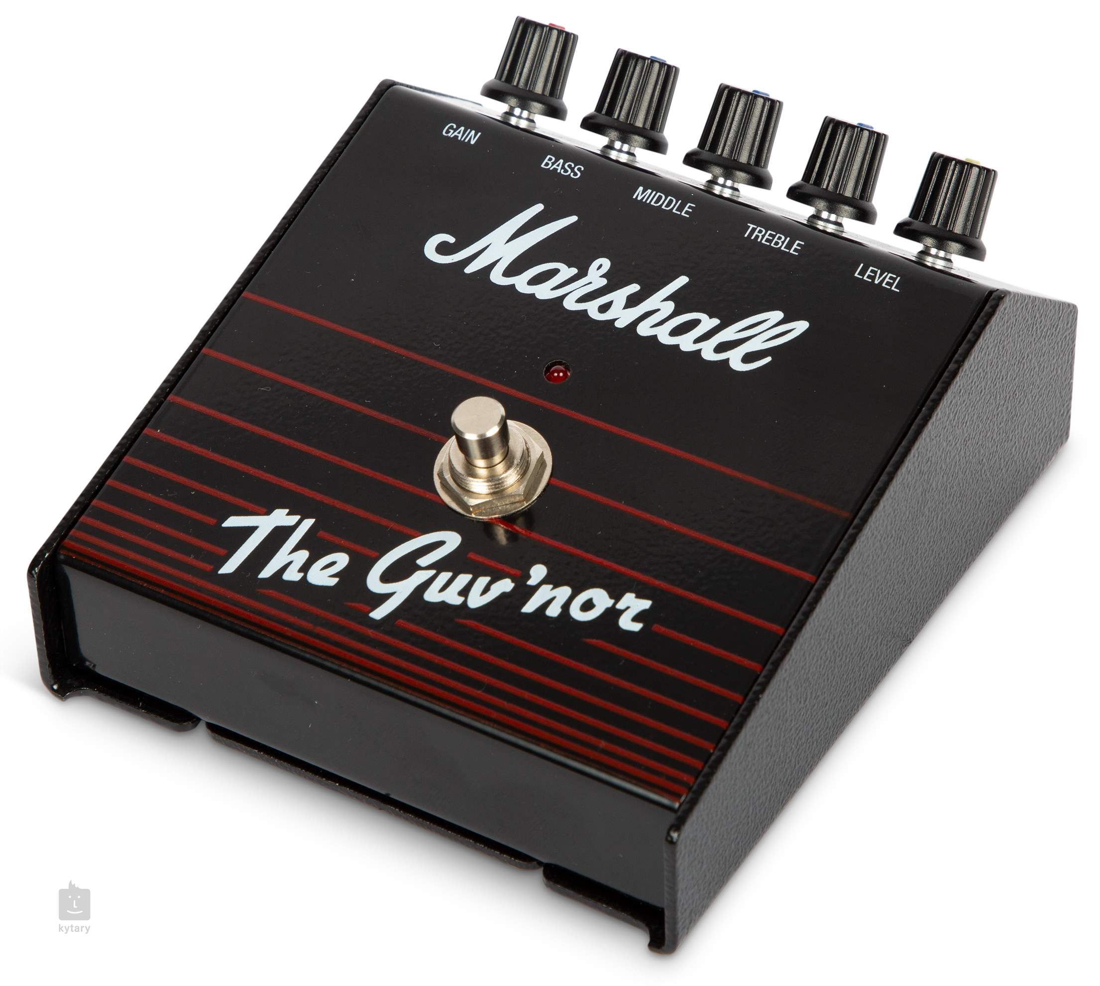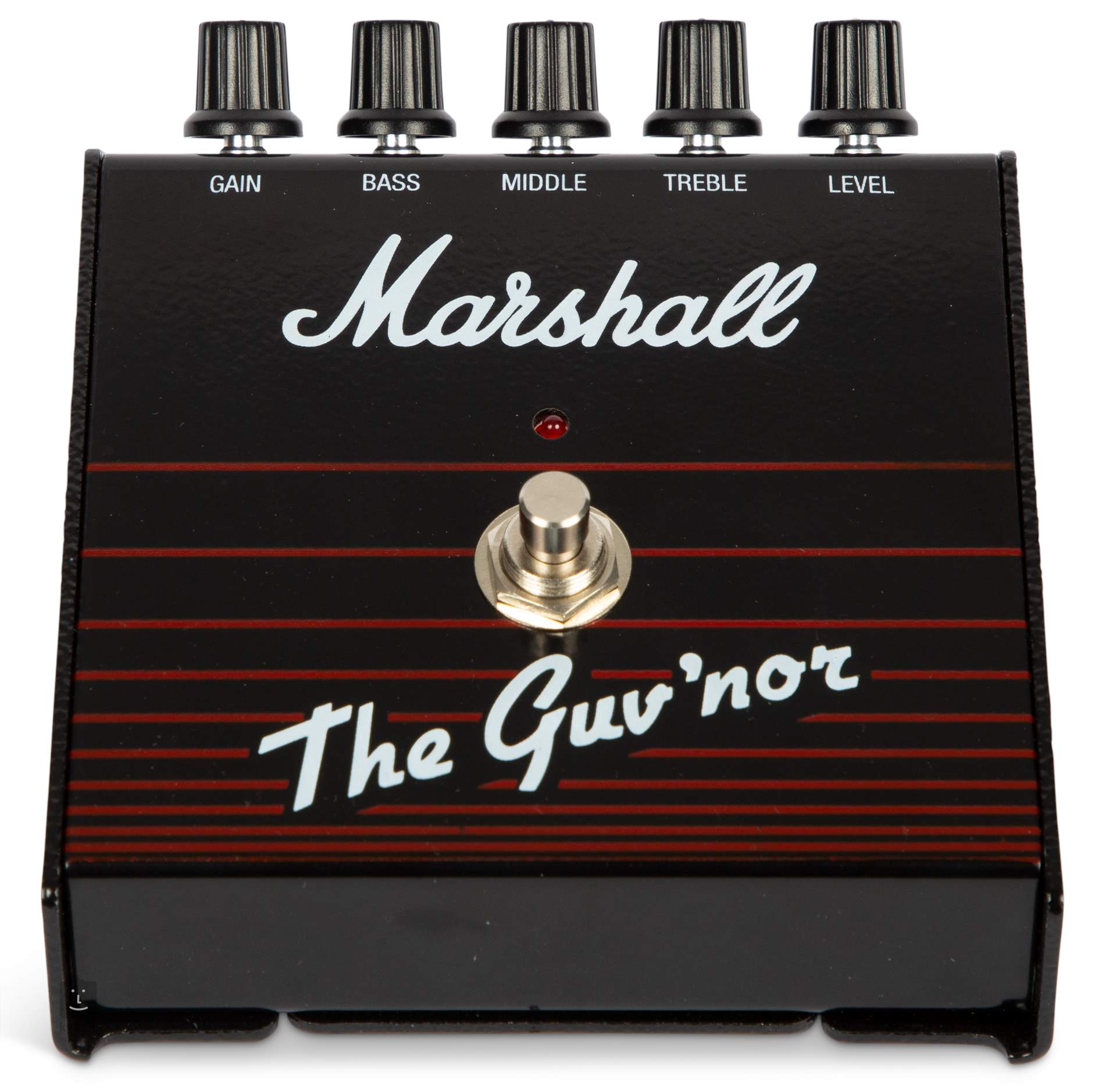 Oryginalny model Marshall Guv'nor z 1988 roku był pierwszym efektem "amp-in-a-box", który skompresował wzmacniacz gitarowy Marshall do kompaktowego formatu efektu pedałowego. Marshall Guv'nor jest dokładną repliką oryginału - oferuje organiczne, ciepłe zniekształcenie wzmacniacza gitarowego, które przechodzi od bluesowego/rockowego przesterowania o niskim wzmocnieniu do przesterowania/ zniekształcenia gitar z lat 80-tych. Złącze pętli efektów może połączyć pedał z innymi efektami gitarowymi, takimi jak delay/reverb, aby naprawdę podkręcić gitarowe solówki.