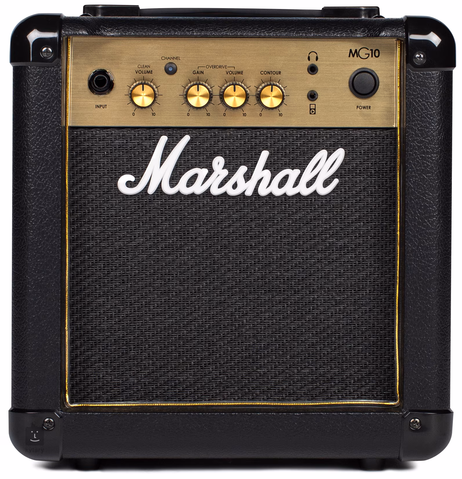 MG10 to najmniejszy model w ofercie. Jest to dwukanałowe combo z prostym sterowaniem. Kanał czysty ma tylko potencjometr volume, kanał overdrive ma volume i gain, razem dzielą się regulacją Contour, za pomocą której regulujesz barwę brzmienia. Użyj gniazda Aux in, aby podłączyć do kompa zewnętrzne ścieżki dźwiękowe Audio/Mp3, do których możesz zagłuszać do woli, dzięki wyjściu słuchawkowemu nawet w trybie cichym.