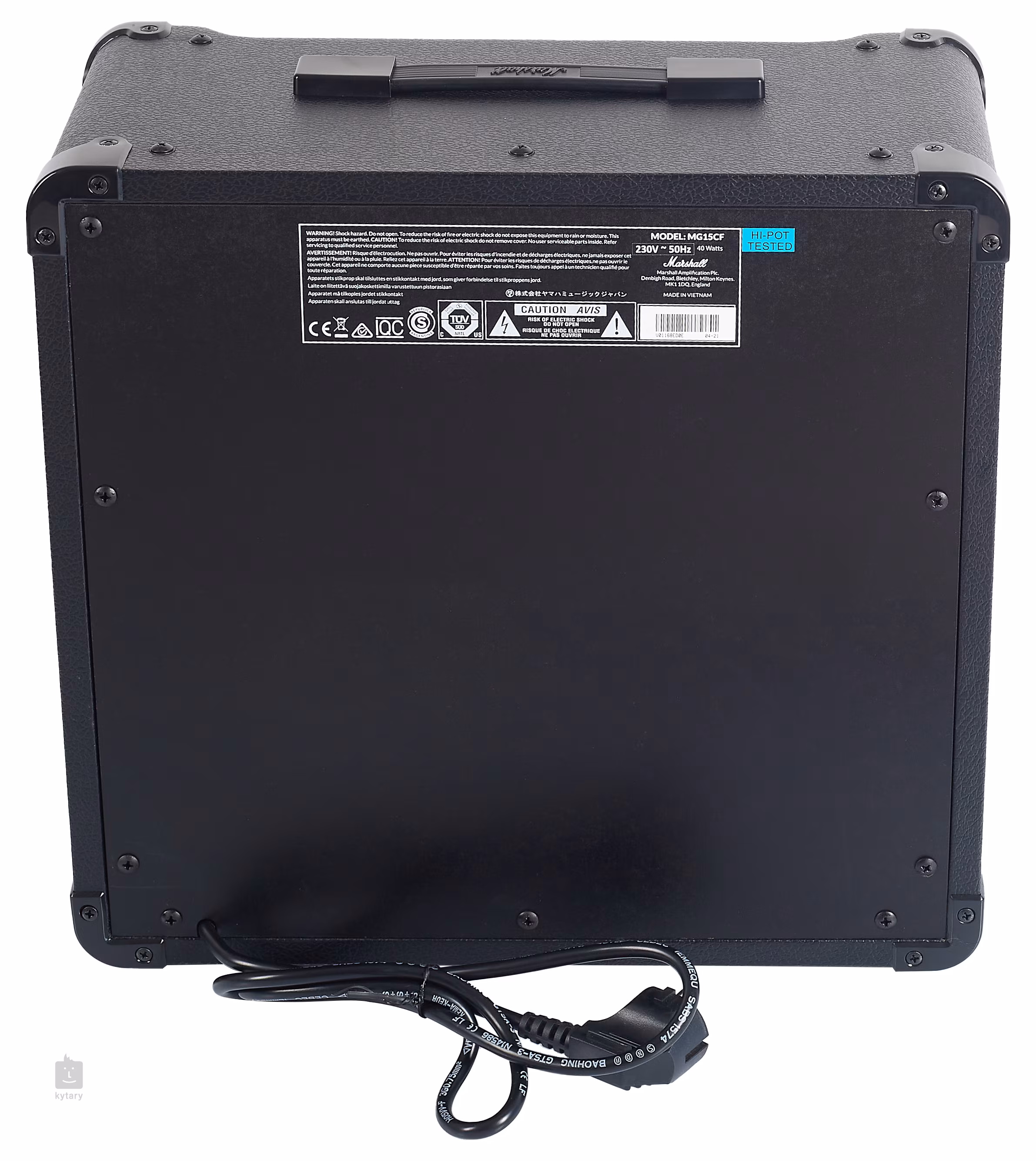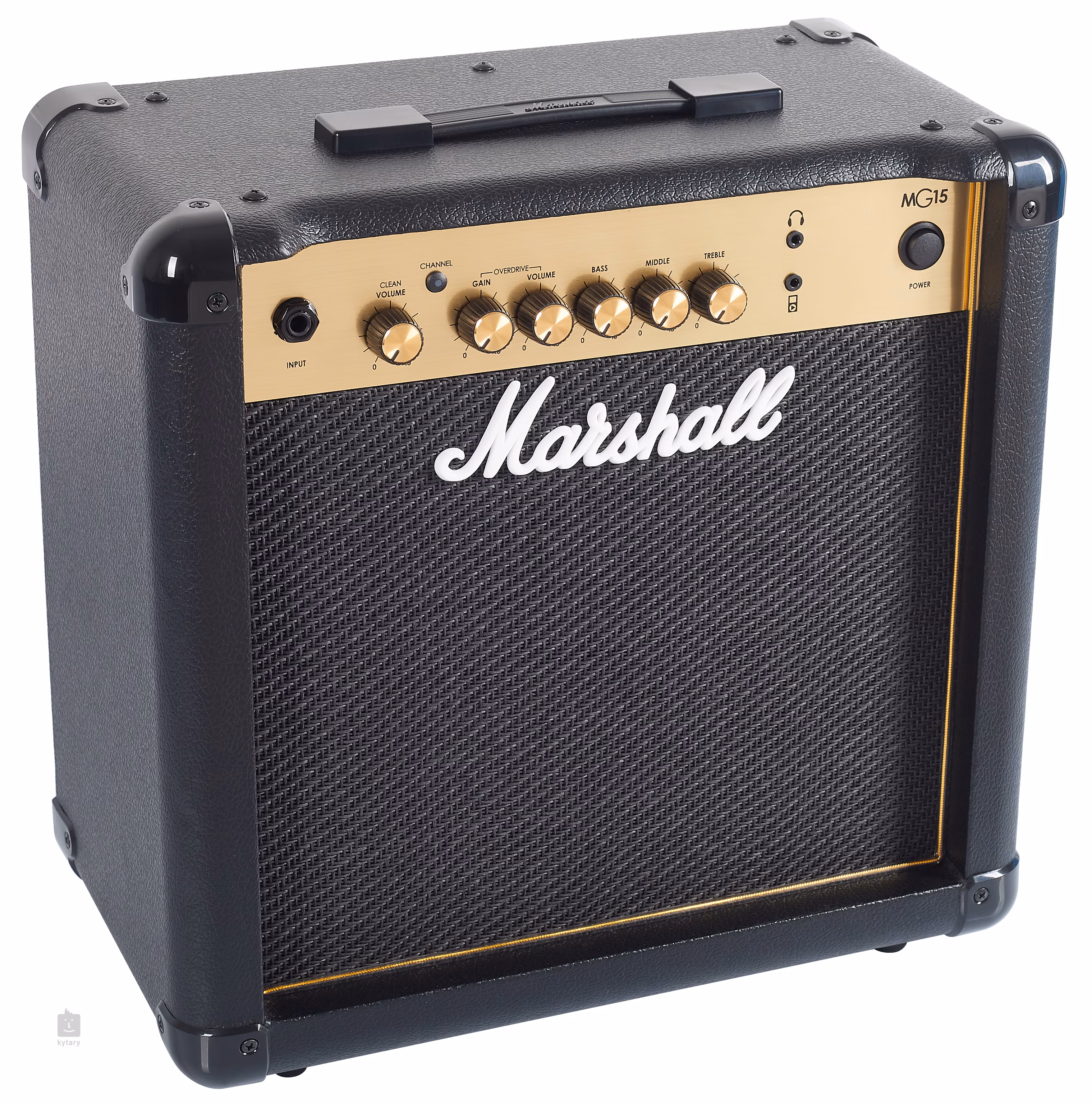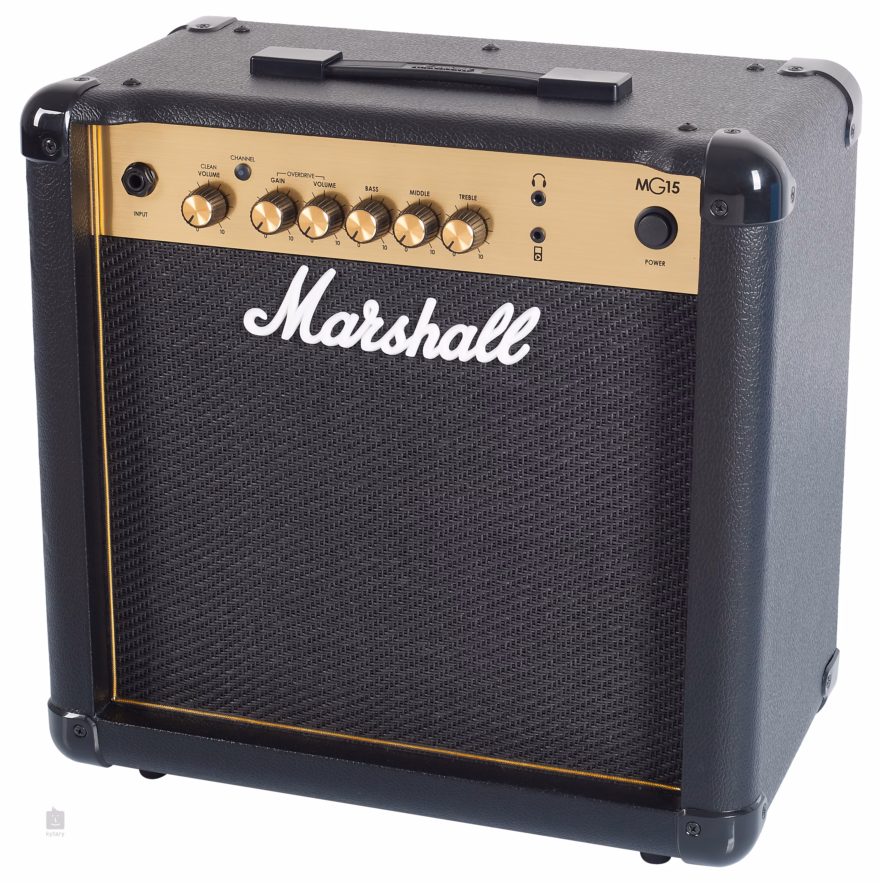 Marshall MG15G to kompaktowe combo gitarowe z mocą 15 W, dwoma kanałami Clean/Overdrive i przejrzystą kontrolą w postaci dwóch potencjometrów głośności, trzypasmowego EQ i kontroli wzmocnienia (kanał OD). Użyj gniazda Aux in, aby podłączyć do kompa zewnętrzne ścieżki dźwiękowe Audio/Mp3, do których możesz zagłuszać do woli - dzięki wyjściu słuchawkowemu, nawet w trybie cichym. To sprawia, że jest to dobry wybór na maszynę domową, ale jego osiągi z pewnością wystarczą do nagłośnienia kameralnego koncertu w mniejszym klubie, barze, imprezy ze znajomymi itp.