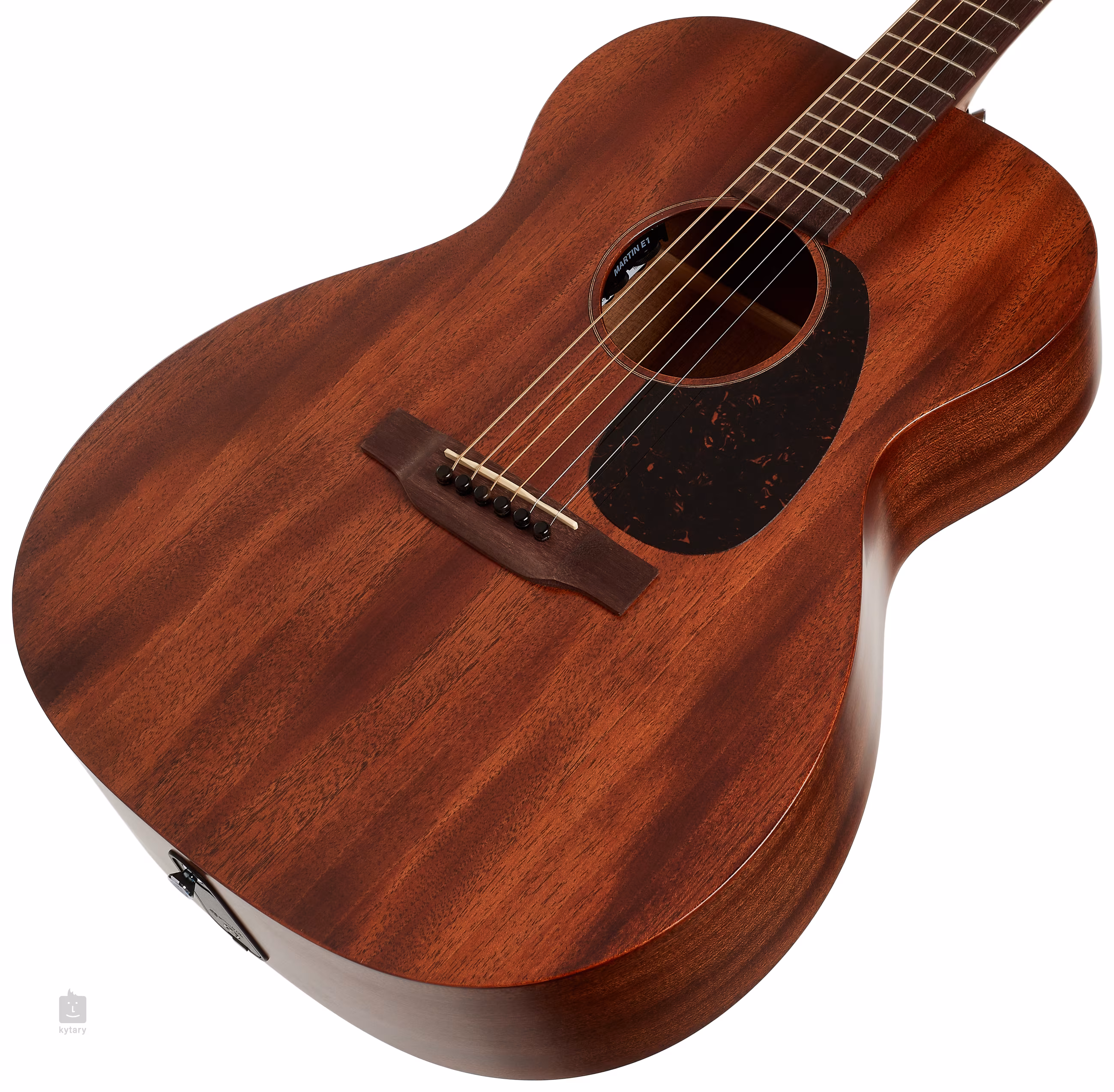 Przednia płyta gitary elektroakustycznej Martin 000-15E jest wykonana z litego mahoniu, tylna płyta i boki są wykonane z litego sapele, czyli drewna o właściwościach, wyglądzie i składzie botanicznym zbliżonym do mahoniu. Satyna lakierowana na korpusie nadaje instrumentowi wygląd i wrażenie gitary granej od lat. Rezonans płyty przedniej i dobre właściwości akustyczne gitary wzmacnia obniżone żebrowanie typu X (Scalloped X-Brace). Zalety tego instrumentu docenisz zarówno podczas występów na żywo, jak i pracy w studiu, a mniejszy rozmiar „trójkąta” (w porównaniu z gitarami typu Dreadnought) gwarantuje dodatkowo dobre właściwości gry i wygodę podczas gry nawet dla muzyków o mniejszym wzroście lub budowie ciała.