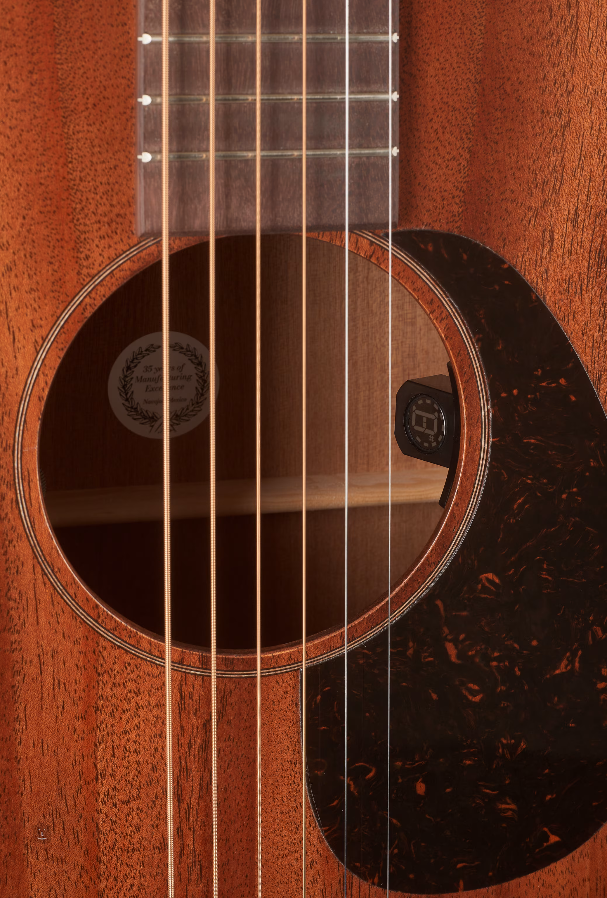 Możliwość nagłośnienia zapewnia elektronika Martin E1 w otworze rezonansowym z regulatorami głośności, tonów i przełącznikiem push/push, zintegrowanym stroikiem chromatycznym i funkcją Phase. Gitara jest dostarczana w wysokiej jakości miękkim futerale (Soft Shell Case), dzięki czemu jest natychmiast gotowa do załadowania do bagażnika samochodu/furgonetki na długie lub krótkie podróże w poszukiwaniu muzycznych marzeń.