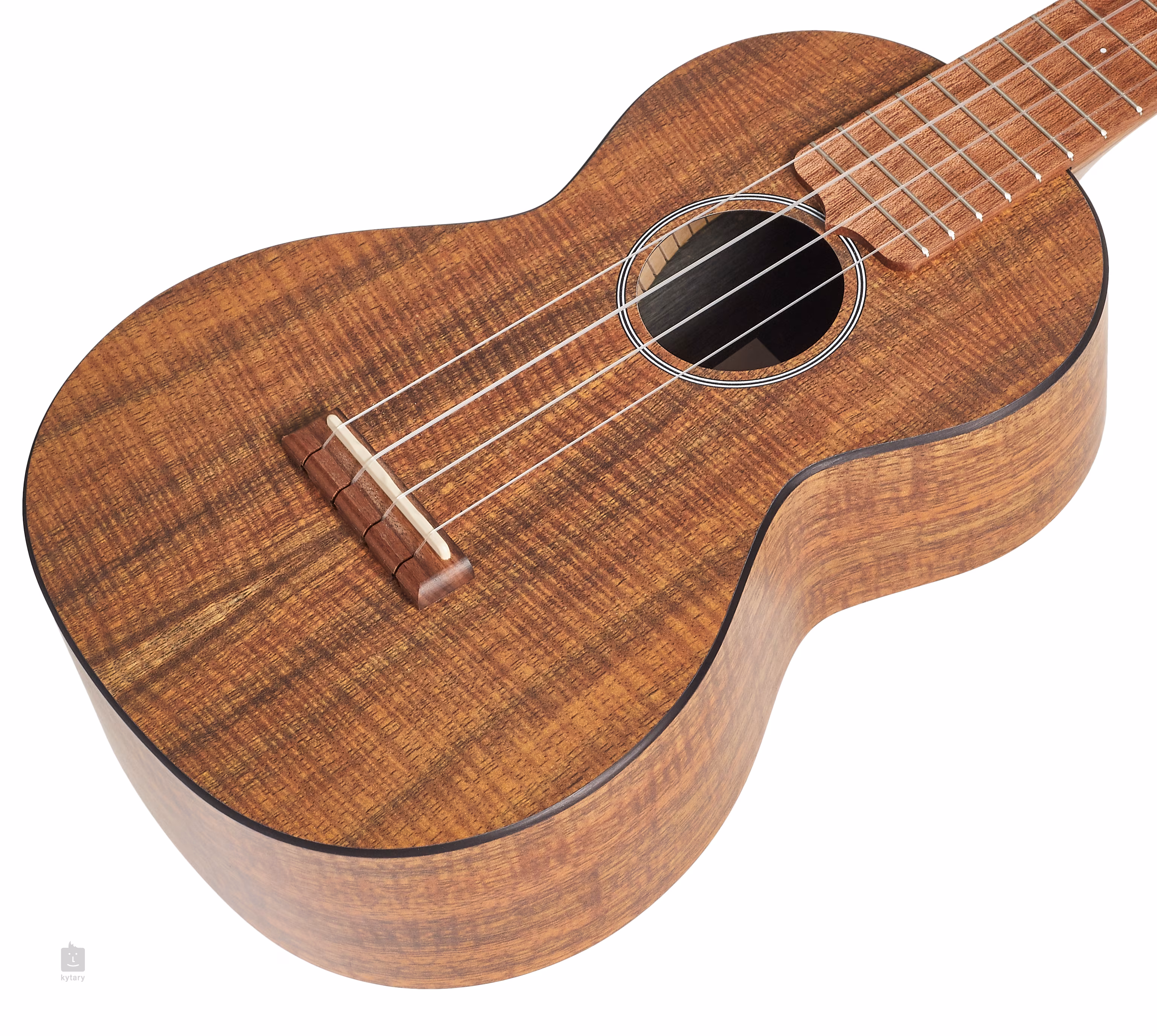 Struny są utrzymywane w niklowych maszynkach do strojenia Grover i główce z drewna morado (inna nazwa pau ferro) za pomocą zerowego i skompensowanego progu siodełka TusQ. Ukulele dostarczane jest w pokrowcu.