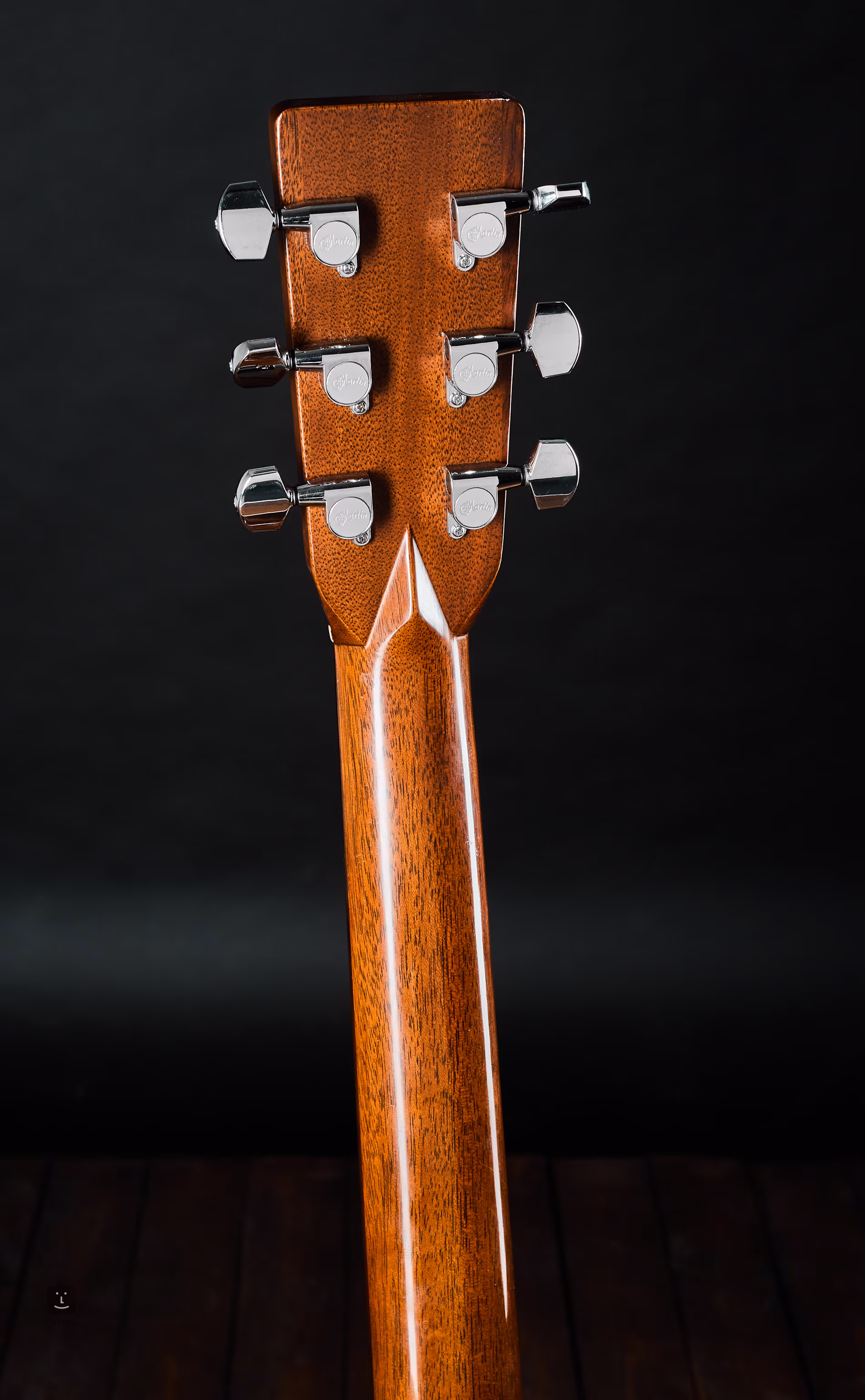 Dreadnought, zwany czasem po prostu „D”, to oryginalny kształt marki Martin. Model D-28 ma konstrukcję z litego drewna, z płytą przednią ze świerku oraz bokami i tyłem z palisandru. Szyjka jest mahoniowa. Z palisandru wykonano również mostek, okleinę na główce oraz podstrunnicę.