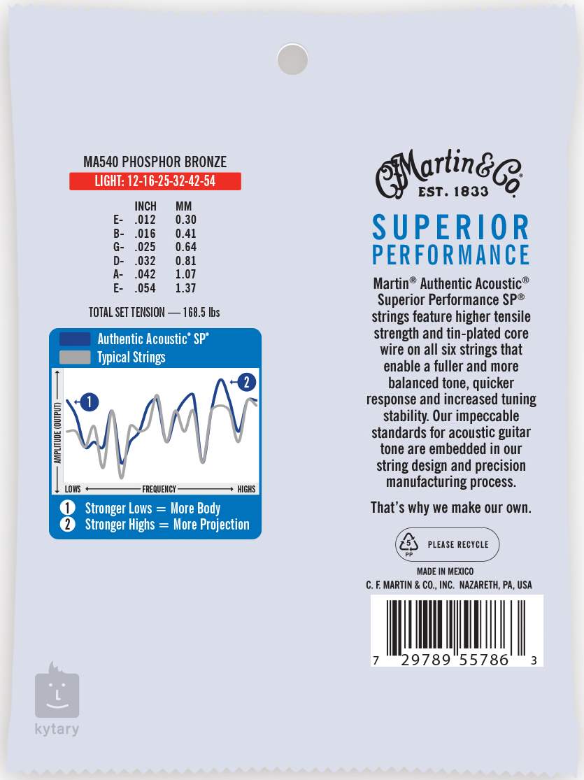 Struny Martin Authentic SP zostały zaprojektowane z myślą o potrzebach aktywnych muzyków, dlatego muszą sprostać wymagającym warunkom ciągłych koncertów i prób. Ich podstawą jest stalowy rdzeń pokryty warstwą cyny, zapewniającą zwiększoną odporność na korozję, natomiast doskonałe właściwości brzmieniowe gwarantuje owijka ze stopu fosforowego brązu. W rezultacie uzyskujemy ciepłe, zaokrąglone brzmienie, które z pewnością pogłaska cię po duszy i nada twojej grze cieplejszy charakter. Oprócz wysokiej wytrzymałości i świetnego brzmienia możesz również liczyć na doskonałą grywalność i stuprocentową stabilność strojenia w każdej sytuacji.