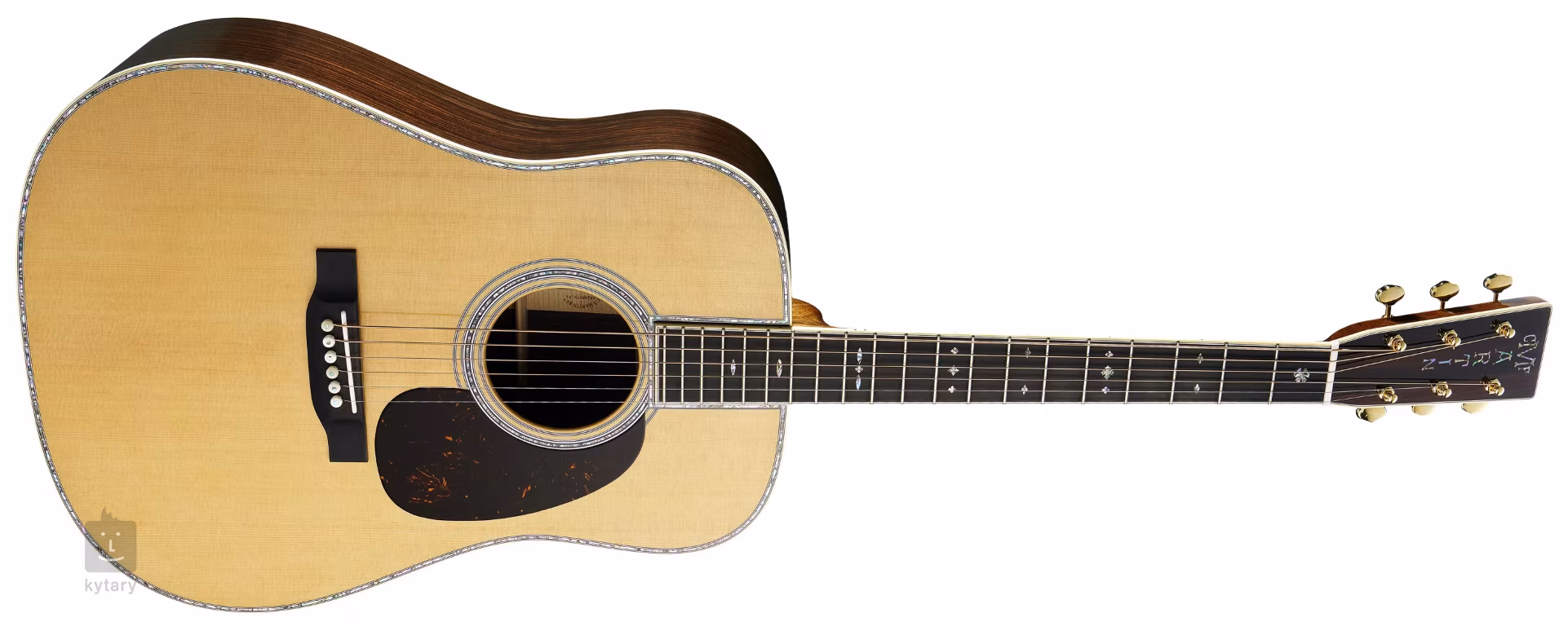 Szlachetny wygląd instrumentu podkreśla szereg luksusowych elementów dekoracyjnych w postaci perłowej rozety i wkładki przedniej płyty (Abalone), ozdobnych wkładek tylnej płyty, obramowania korpusu, gryfu i główki w kolorze Antique White, forniru palisandrowego na główce z perłowym logo firmy, kołków strojących typu Butterbean oraz praktycznej płytki ochronnej z imitacji szylkretu, która jednocześnie chroni lakier gitary przed zarysowaniami.