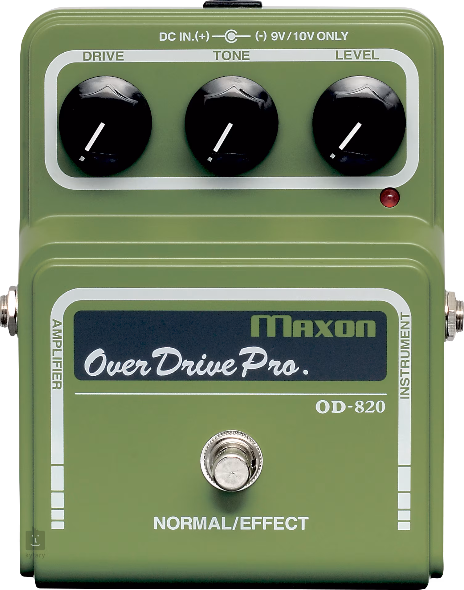 Maxon OD-820 OVERDRIVE PRO to czysty booster/overdrive zaprojektowany specjalnie do użytku z instrumentami lampowymi. Oferuje odpowiedź w całym spektrum częstotliwości i dużą wrażliwość na dynamikę gry (uderzenia palcami, pick). Pudełko jest podłączone jako buforowany bypass. Do zasilania wymaga baterii 9V lub zasilacza 9V.