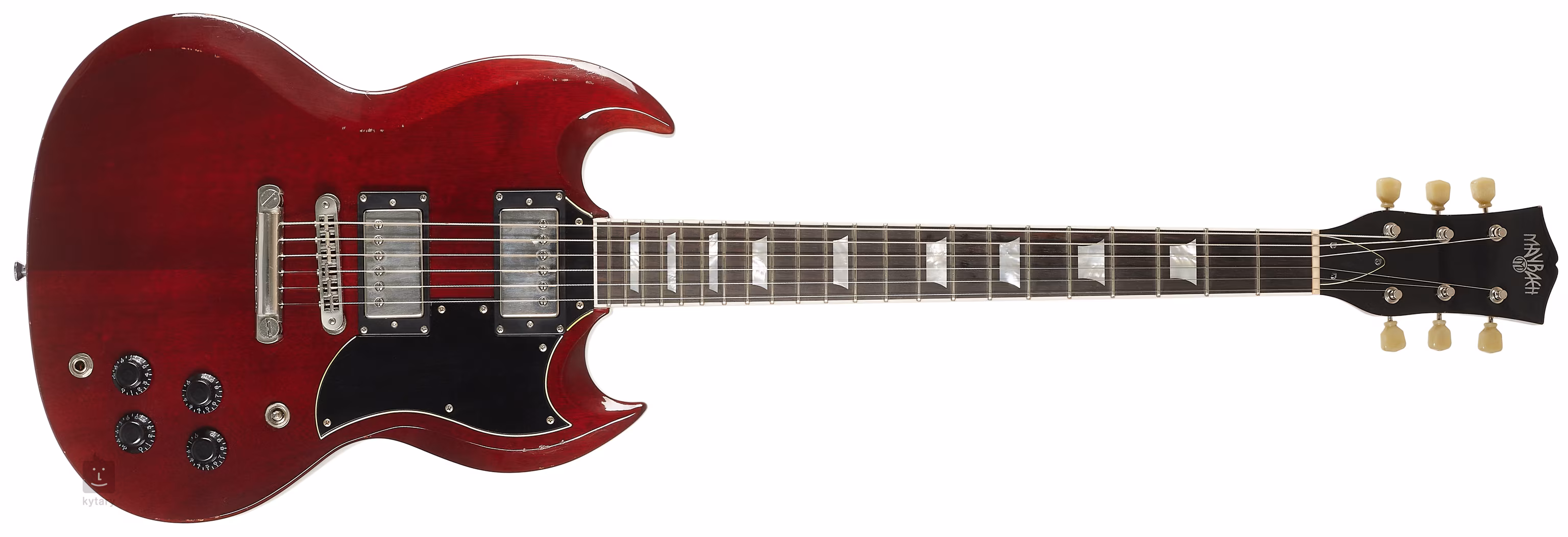 Maybach Albatroz '65-2 Dark Wine Red to gitara elektryczna typu SG double cut, która oferuje wszystkie klasyczne elementy kojarzone z tym instrumentem - lekki mahoniowy korpus z płaskim topem, dwoma wycięciami i wyprofilowanymi krawędziami, mahoniową szyjkę i palisandrową podstrunnicę z dwudziestoma dwoma progami Medium Jumbo.