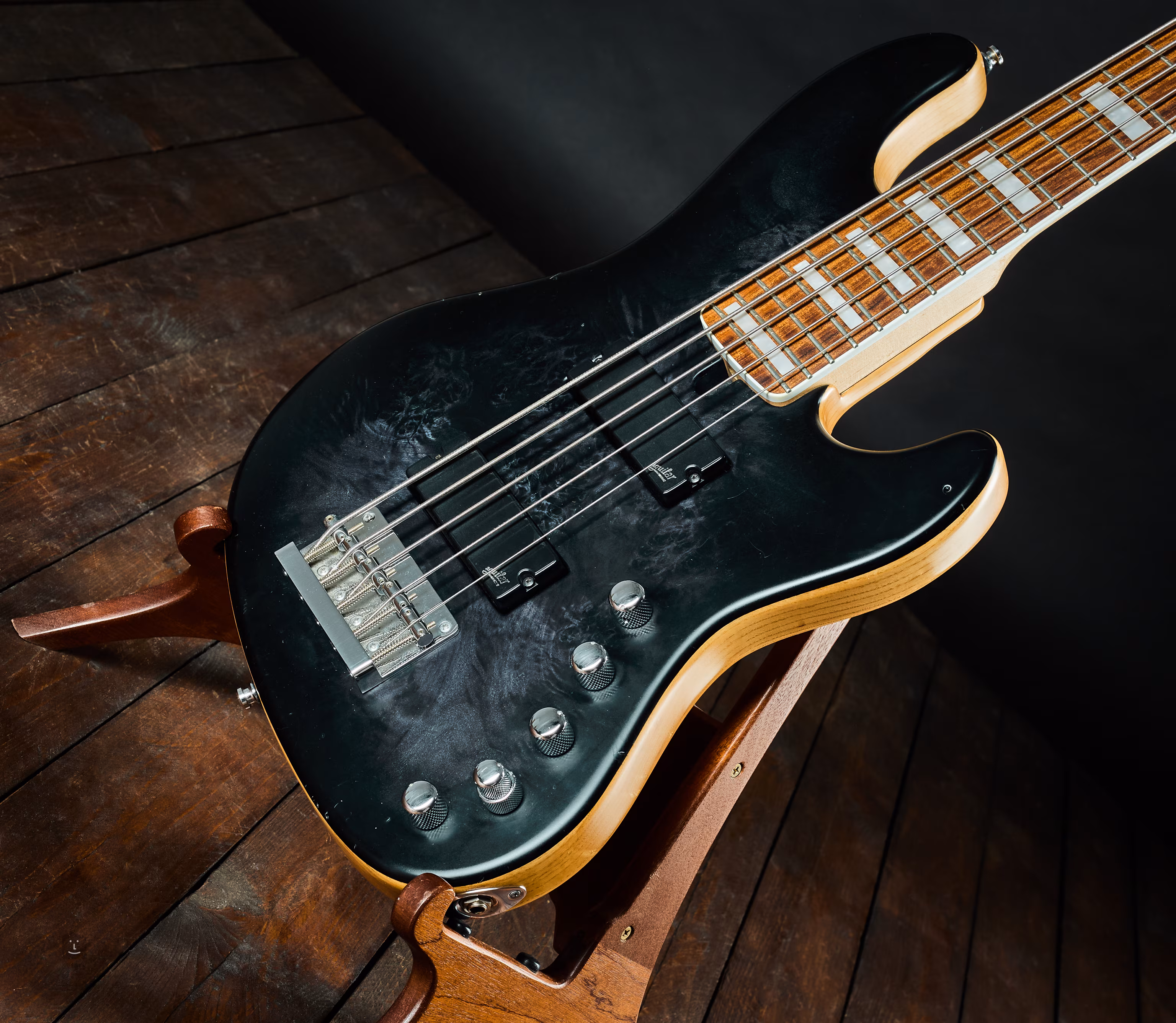 Dwuoktawowy, aktywny super-jazzbass z warsztatu polskiego producenta butikowego Mayones. Instrument został wyprodukowany w Gdańsku w 2019 roku i od tego czasu był intensywnie używany. Na korpusie widać liczne drobne wgniecenia i zadrapania. Pod względem funkcjonalnym wszystko działa w 100%.