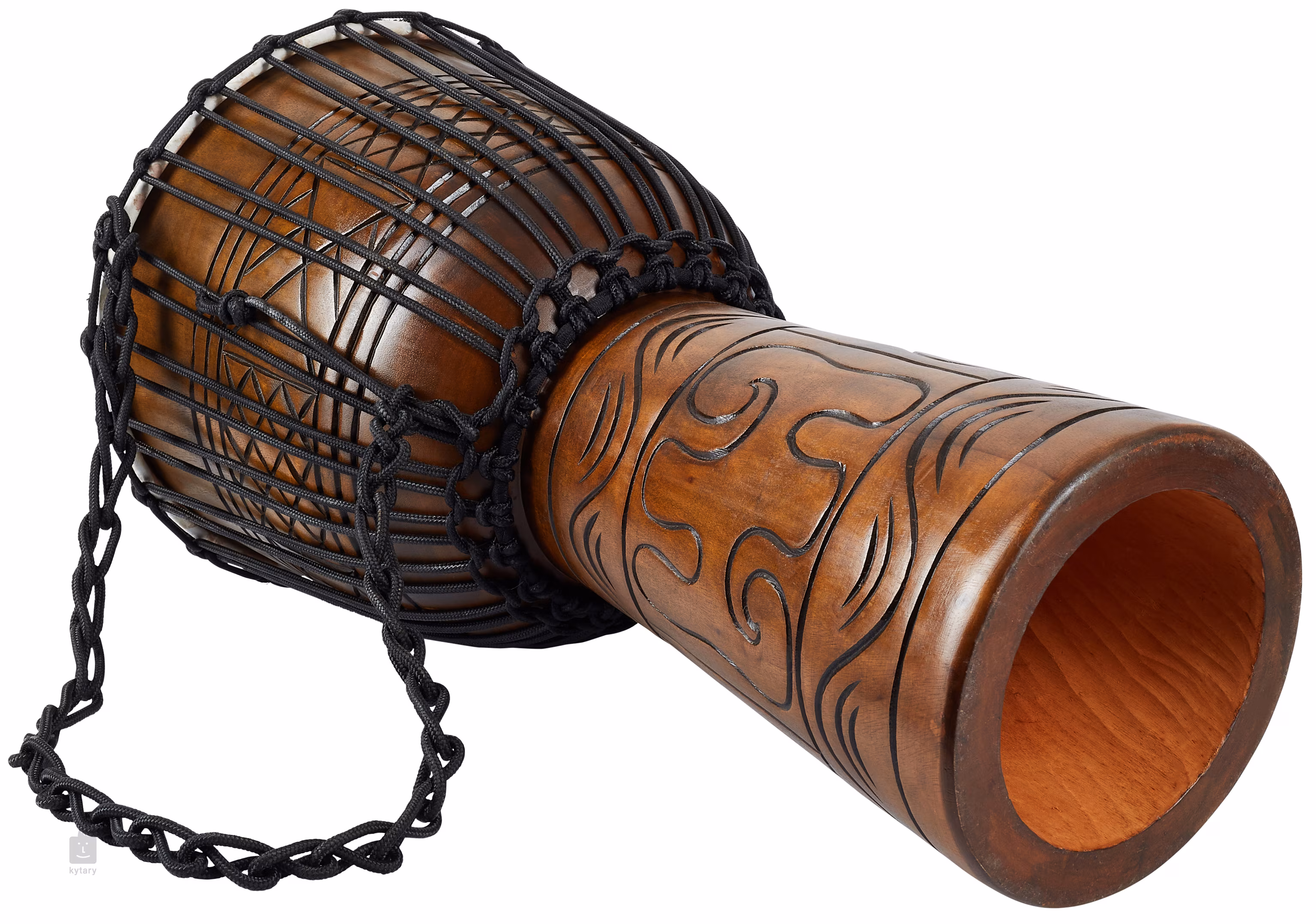 Wykonane z jednego kawałka selekcjonowanego drewna mahoniowego, starannie wyselekcjonowana skóra kozia jest użyta do budowy płyty rezonansowej - absolutnie idealny materiał do osiągnięcia zrównoważonego brzmienia. Jego średnica wynosi 12 cali, a wysokość 24 cale, kształt jest dość tradycyjny, więc można się spodziewać tradycyjnego brzmienia. Instrument jest ozdobiony ręcznie rzeźbionymi wzorami z czarną kolorystyką, dzięki czemu dość autentycznie przypomina instrument, który mógł być wykonany wiele wieków temu.