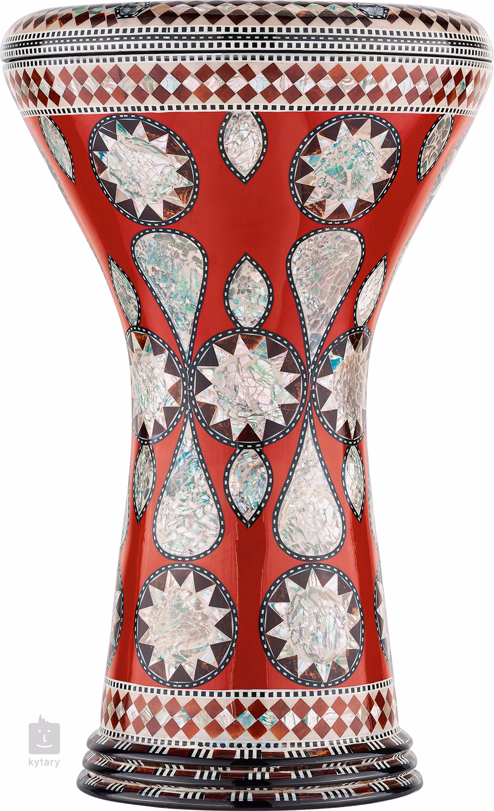 Ten Doumbek z serii Artisan jest wykonany w Egipcie z wysokiej jakości odlewanego aluminium. Jego masywny korpus, ważący 3,85 kg, jest w stanie wydobyć zapierające dech w piersiach brzmienie, które z pewnością zadowoli niejednego profesjonalnego gracza, a jednocześnie jest pięknie wyważony dzięki swojemu specyficznemu kształtowi. Znajdziesz tu wykończenie z autentycznymi egipskimi mozaikami stworzonymi przez inkrustację z masy perłowej. W zestawie znajduje się klucz do strojenia.