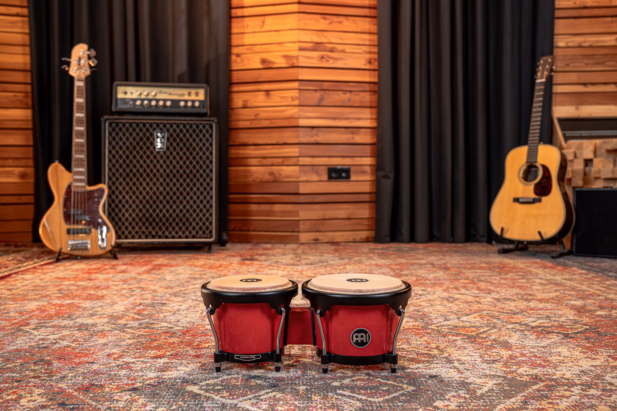 Bongosy Meinl z serii Journey to świetny wybór szczególnie dla tych, którzy szukają wytrzymałego instrumentu do podróży, ale także dla początkujących i średnio zaawansowanych graczy, którzy szukają świetnego stosunku jakości do ceny. Ich korpusy mają tradycyjny kształt i wykonane są z ekologicznego, niezwykle trwałego tworzywa ABS. O najwyższej jakości dźwięk dbają miechy wykonane z selekcjonowanej skóry bawolej, które można łatwo i precyzyjnie dostroić dzięki 8-milimetrowym obręczom z czarnym piaskowanym wykończeniem, których krawędzie są zaokrąglone dla maksymalnego komfortu gry. Więc jeśli szukasz wysokiej jakości instrumentu, o który nie musisz się martwić, gdy jesteś dużo w drodze, to trafiłeś we właściwe miejsce. W zestawie znajduje się klucz do strojenia.