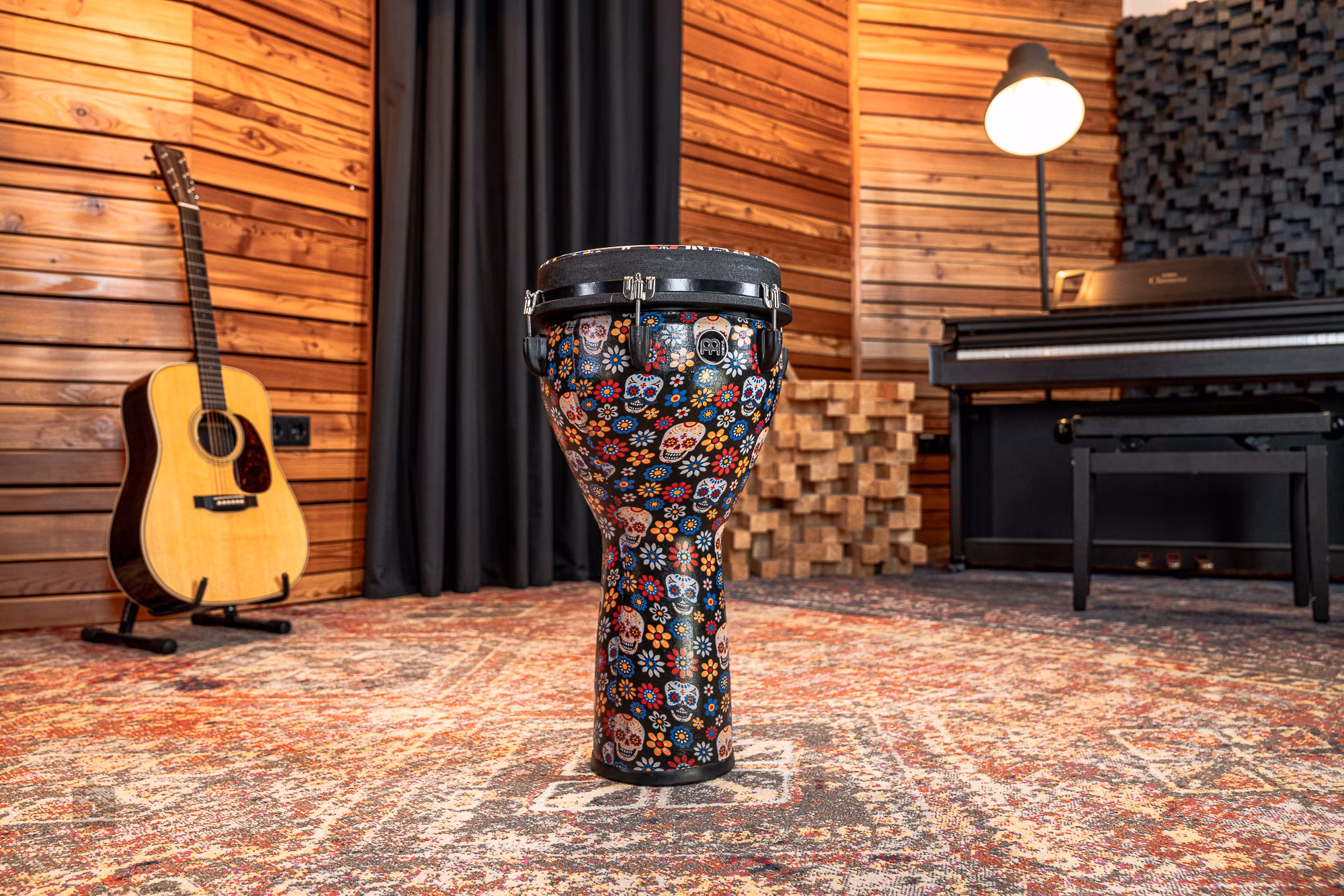 Jeśli szukasz naprawdę wysokiej jakości djembe o potężnym brzmieniu, które dzięki swojej trwałości i lekkości idealnie nadaje się do częstego podróżowania, to dobrze trafiłeś. Ta djembe z serii Jumbo firmy Meinl została wykonana z lekkiego materiału syntetycznego, który jest nie tylko bardzo wytrzymały i w pełni odporny na warunki atmosferyczne, ale także daje instrumentowi bardzo szerokie możliwości brzmieniowe. Pomaga w tym również większy korpus, który dzięki lepszym możliwościom rezonansowym pozwala uzyskać naprawdę gęste brzmienie basu, ale również ostre i skupione tony wysokie lub slap. Stabilne i łatwe strojenie jest zapewnione przez solidny sprzęt, który zapewnia również spójne brzmienie. Model ten charakteryzuje się również stylowym wykończeniem, które z pewnością nie pozostanie niezauważone.