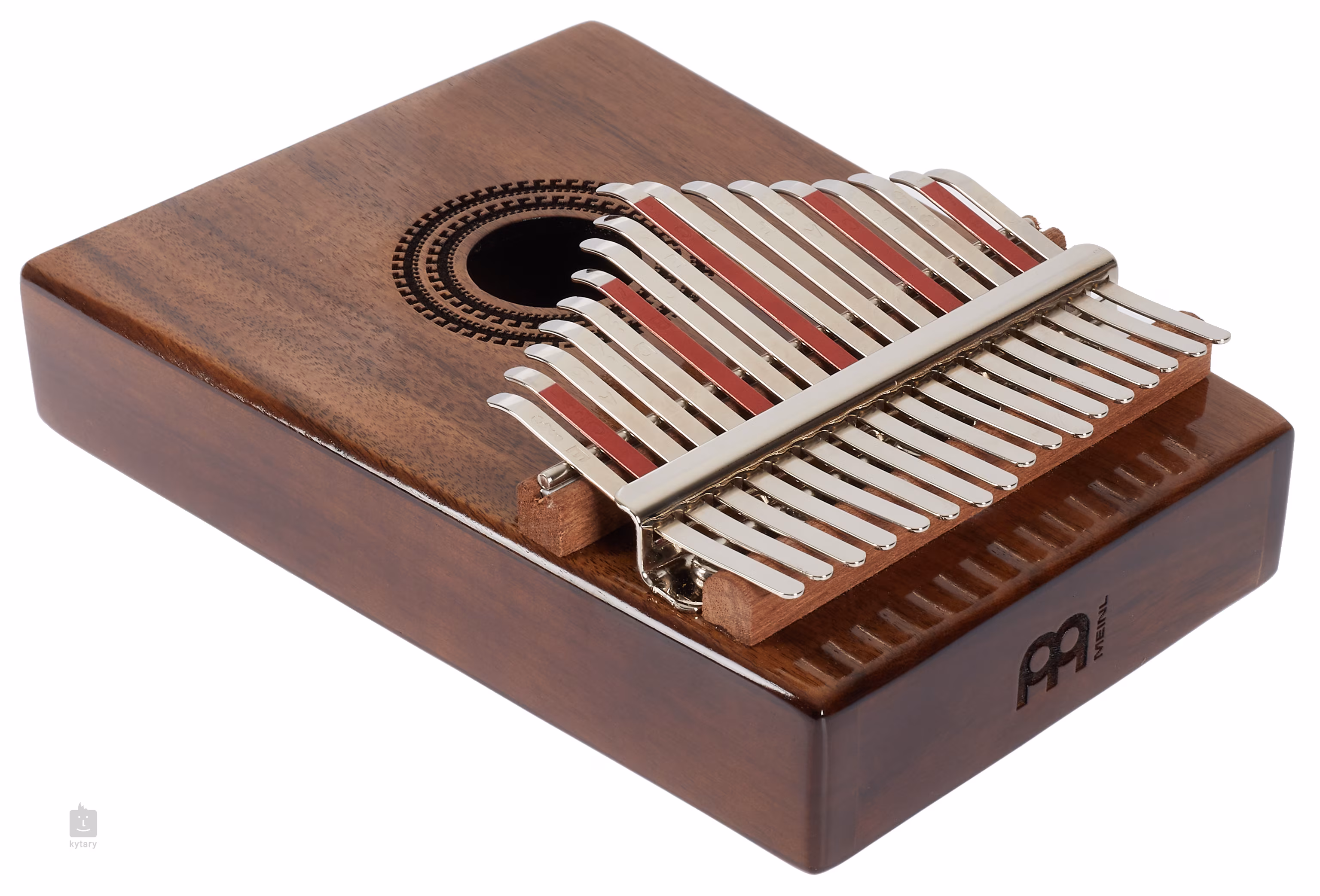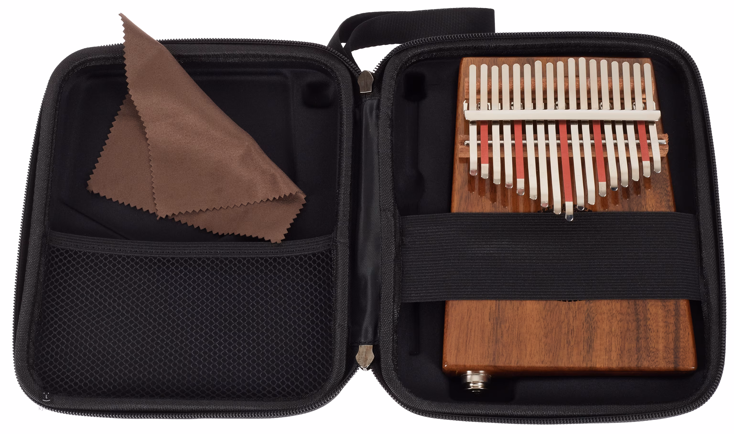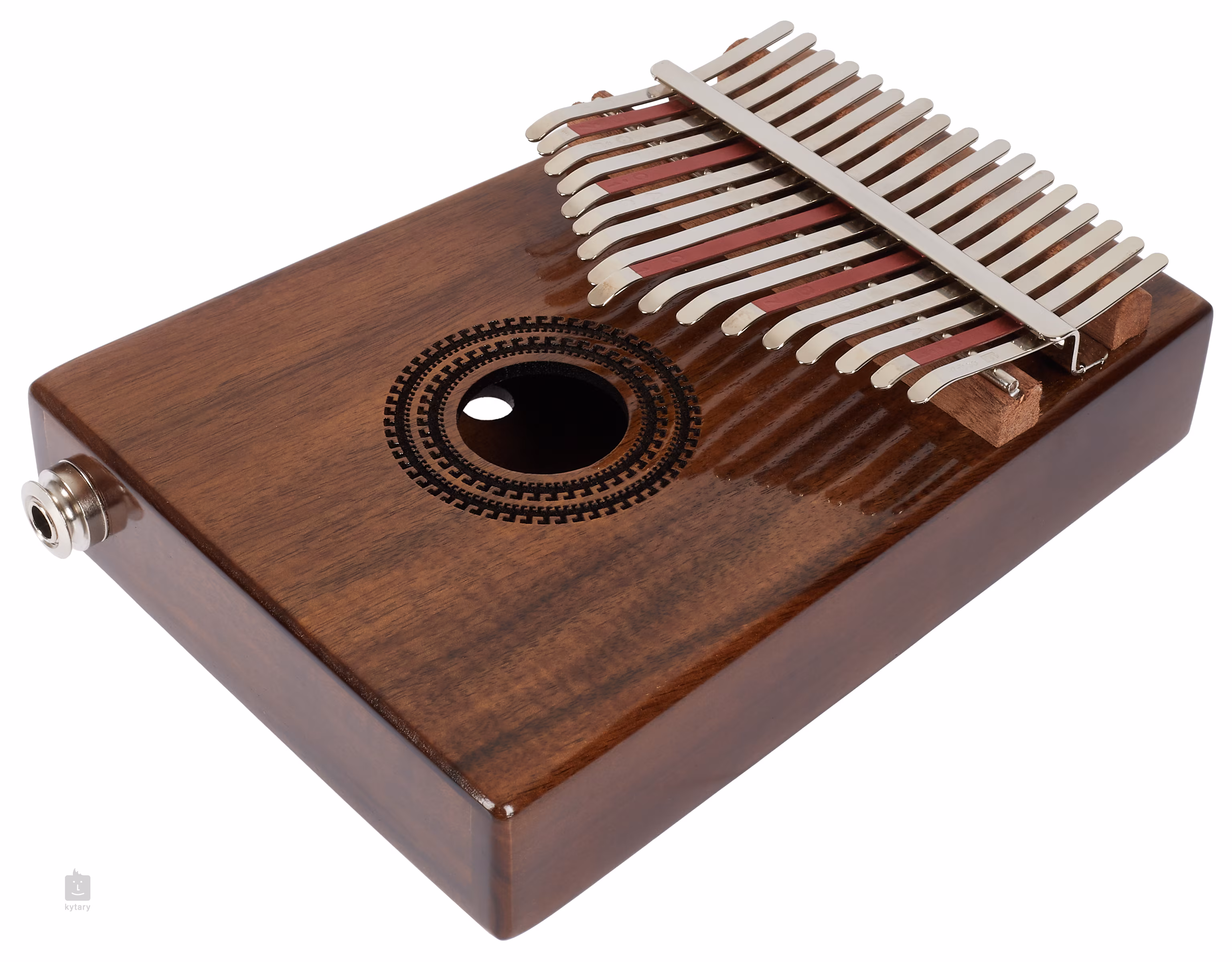 Kalimba jest wyjątkowym instrumentem melodycznym, który doda unikalny i niepowtarzalny element do Twojej produkcji lub występu na żywo. Pochodzi z Afryki, gdzie jest używany od wieków, może być używany do akompaniamentu lub gry solowej. Model ten wykonany jest z wysokiej jakości drewna akacjowego z wykończeniem na połysk. Naturalną akustykę drewna uzupełnia otwór akustyczny, który dodaje ciepła do brzmienia instrumentu i wydłuża sustain. W razie potrzeby można również skorzystać z wbudowanego pickupa, który ułatwia obsługę instrumentu nawet na dużych scenach. Model ten posiada aż siedemnaście "klawiszy", a jego strojenie sprawia, że pięknie wpasowuje się w praktycznie każdą sytuację. Dla lepszej czytelności niektóre klawisze są oznaczone kolorem czerwonym. W zestawie znajduje się również futerał, pokrowiec do przenoszenia, ściereczka do czyszczenia oraz młoteczek, którym w razie potrzeby można nastroić instrument.