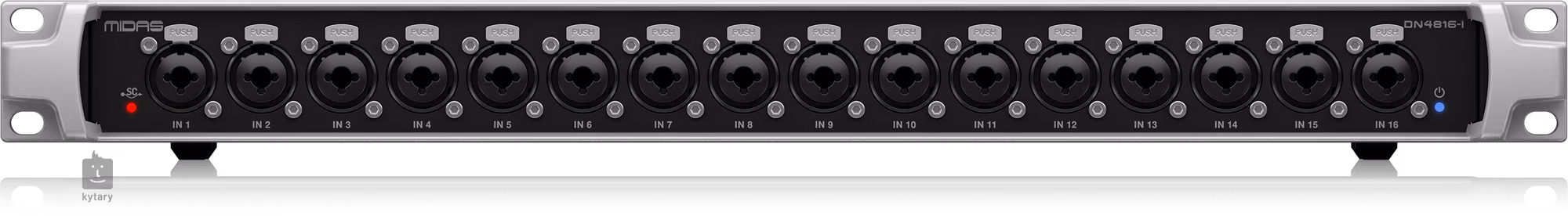 Midas DDN4816-I to analogowy interfejs StageConnect z szesnastoma zbalansowanymi wejściami XLR dla dodatkowych urządzeń StageConnect, głośników Turbosound iQ lub odbiorników Behringer WING i Ultranet, takich jak osobiste miksery monitorujące Midas P16.