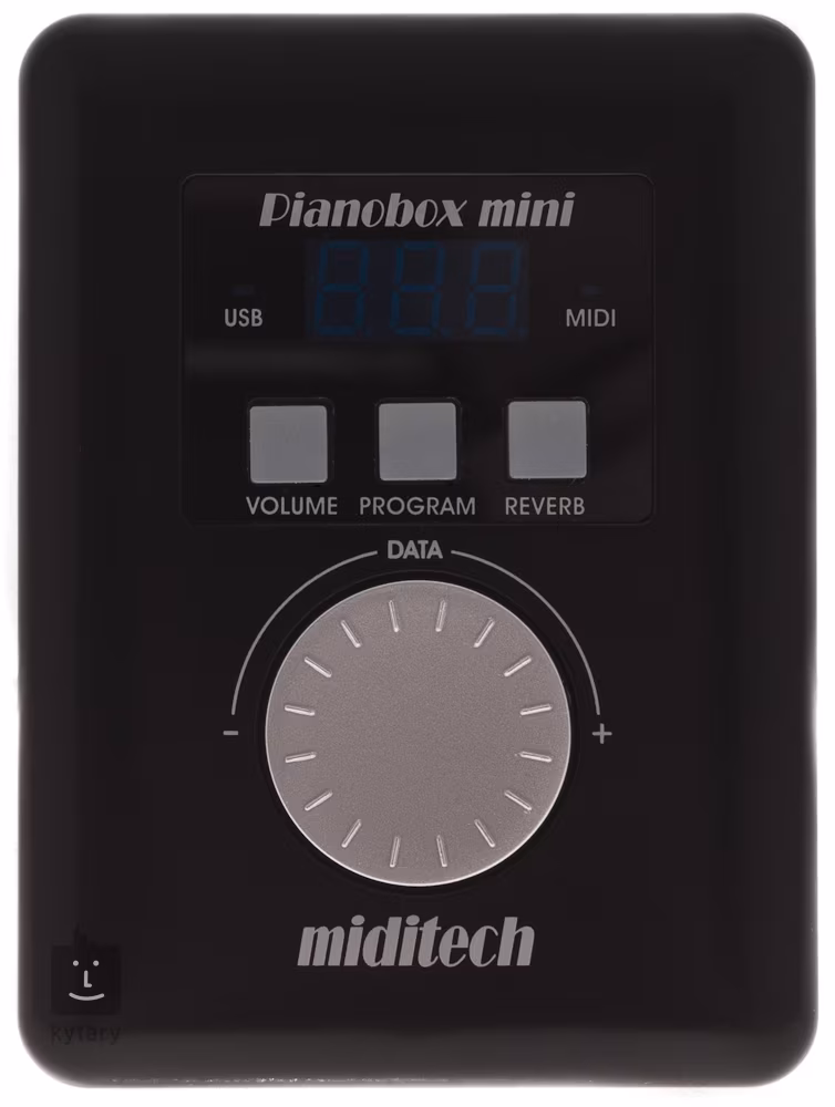 Dzięki PianoBox mini, każda klawiatura główna staje się kompletnym syntezatorem. Urządzenie zawiera 128 rejestrów dźwięków General MIDI, niebieski wyświetlacz LED, 3 przyciski i kółko ułatwiające dostęp do ustawień programu, głośności i pogłosu, adapter MIDI In, wejście USB do podłączenia klawiszy (możliwość zasilania klawiszy z PianoBox mini), zintegrowany akumulator o pojemności 2500mAh.