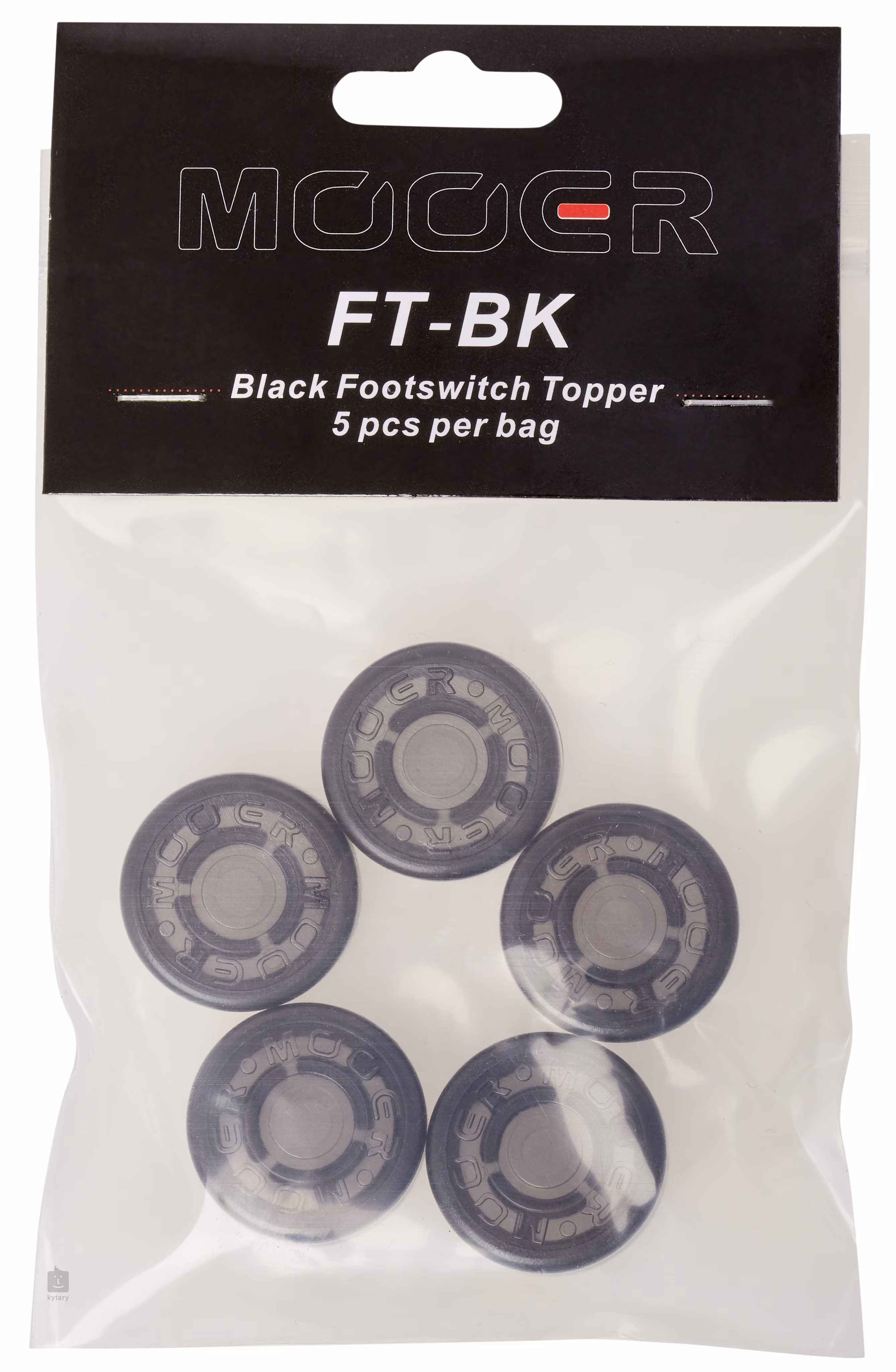 Zestaw pięciu praktycznych nakładek na przełączniki nożne. Osłona wydłuża footswitch, aby ułatwić obsługę przełączników w trudno dostępnych miejscach, takich jak drugi rząd pedalboardów.