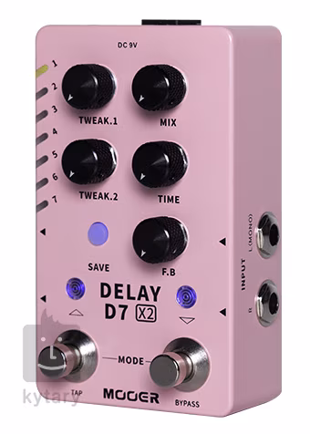 Mooer D7 X2 Delay jest rozwinięciem kompaktowego efektu delay D7 z serii Micro. Oferuje on łącznie 14 efektów delay - od charakteru klasycznych analogowych i taśmowych efektów delay po nowoczesne, takie jak "Low-Bit", "Galaxy" czy "PingPong". Charakter brzmienia można regulować za pomocą pokręteł określających stosunek sygnału suchego do mokrego, czas opóźnienia i liczbę powtórzeń. Czas opóźnienia można również ustawić za pomocą funkcji przełącznika nożnego Tap Tempo. Parametry kontrolek Tweak 1 i Tweak 2 różnią się w zależności od rodzaju efektu.