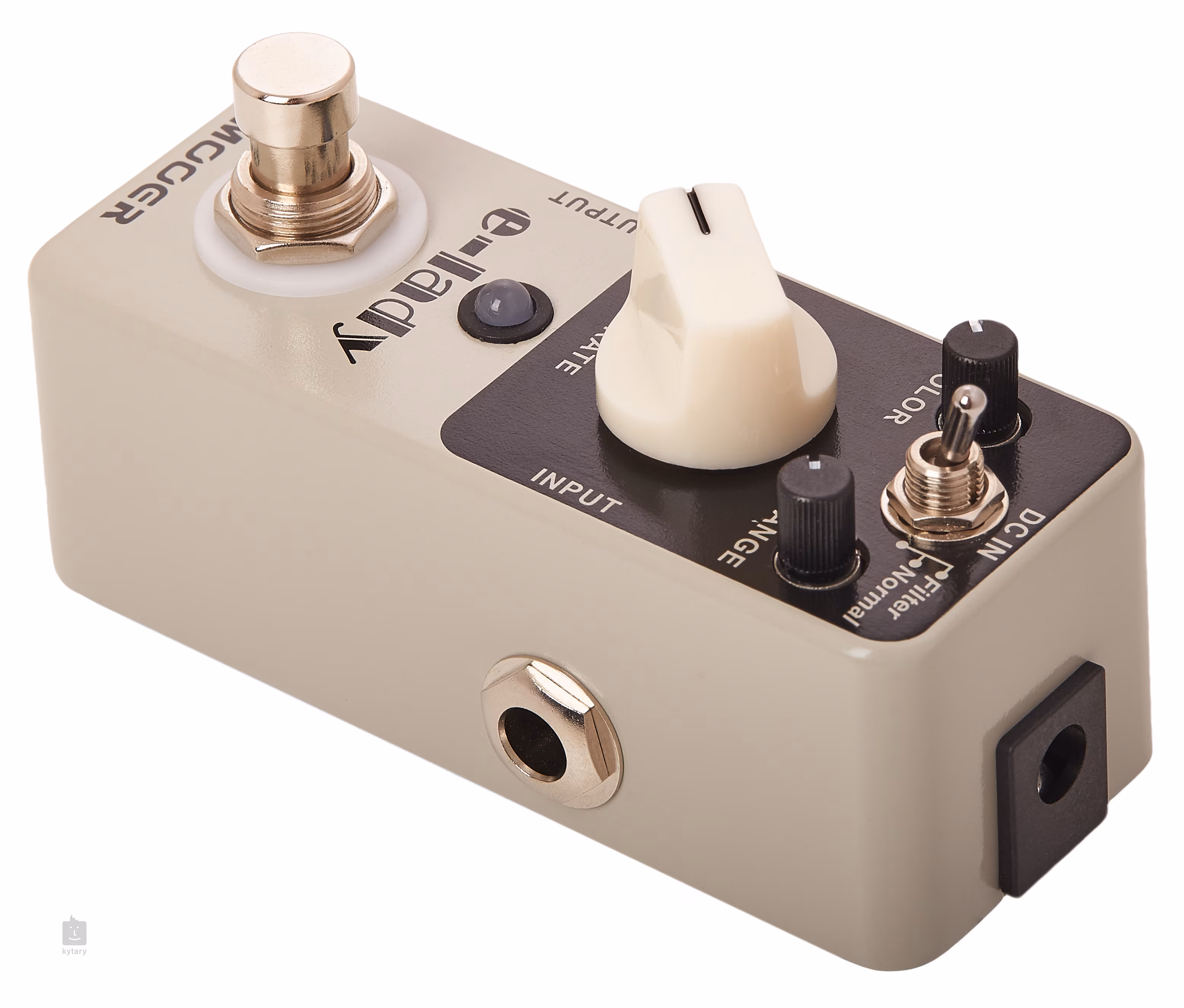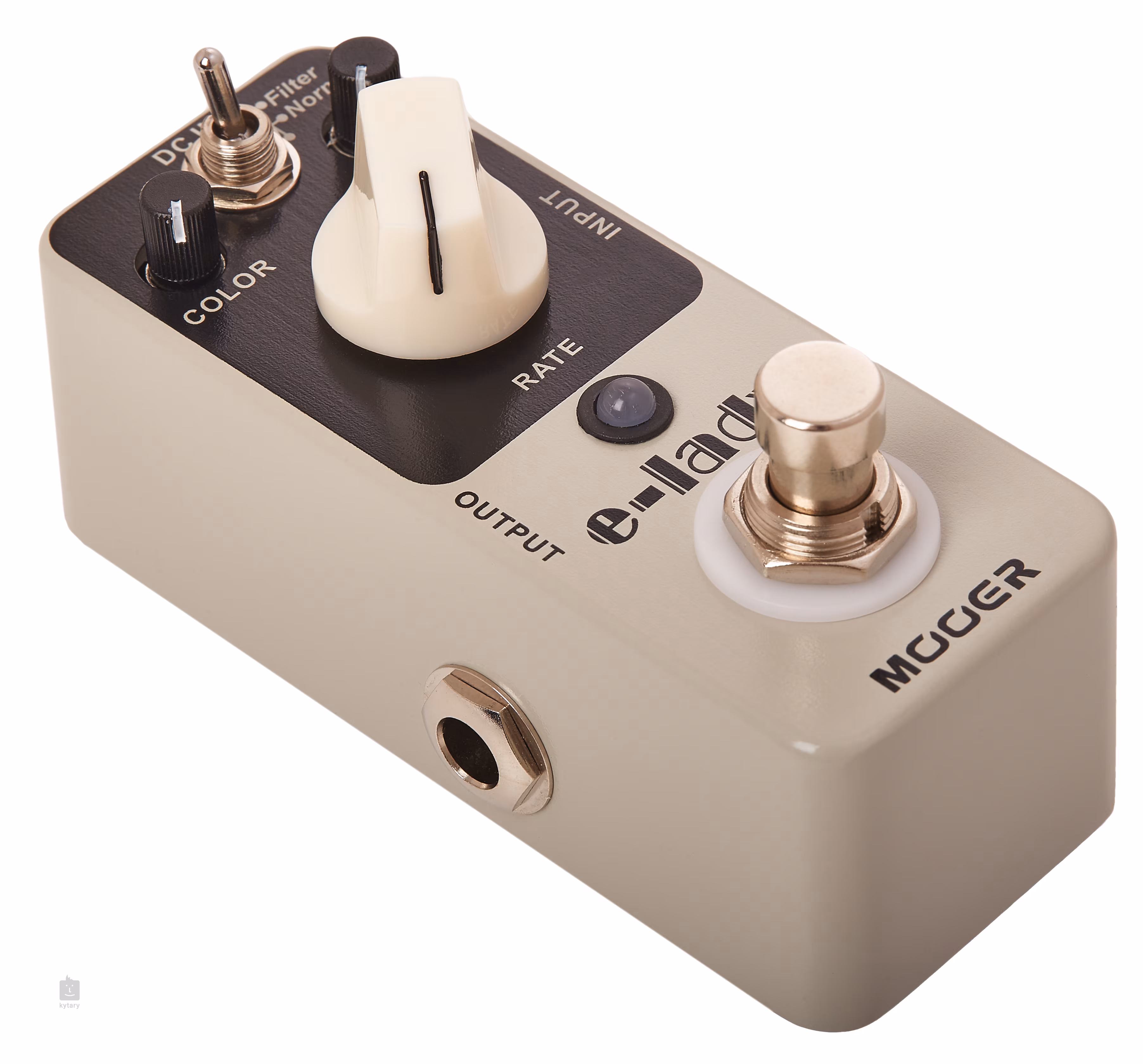 E-Lady to kompaktowy efekt modulacyjny typu flanger z serii Micro chińskiej marki Mooer. Oferuje klasyczne analogowe brzmienia flangera, proste sterowanie i dwa tryby: Normal i Filter. W tym pierwszym zachowuje się jak typowy flanger, podczas gdy w trybie Filter oferuje bardziej radykalne metaliczne dźwięki. Pokrętła określają szybkość i długość modulacji efektu oraz barwę brzmienia (od subtelnych overtonów po typowe metaliczne dźwięki).